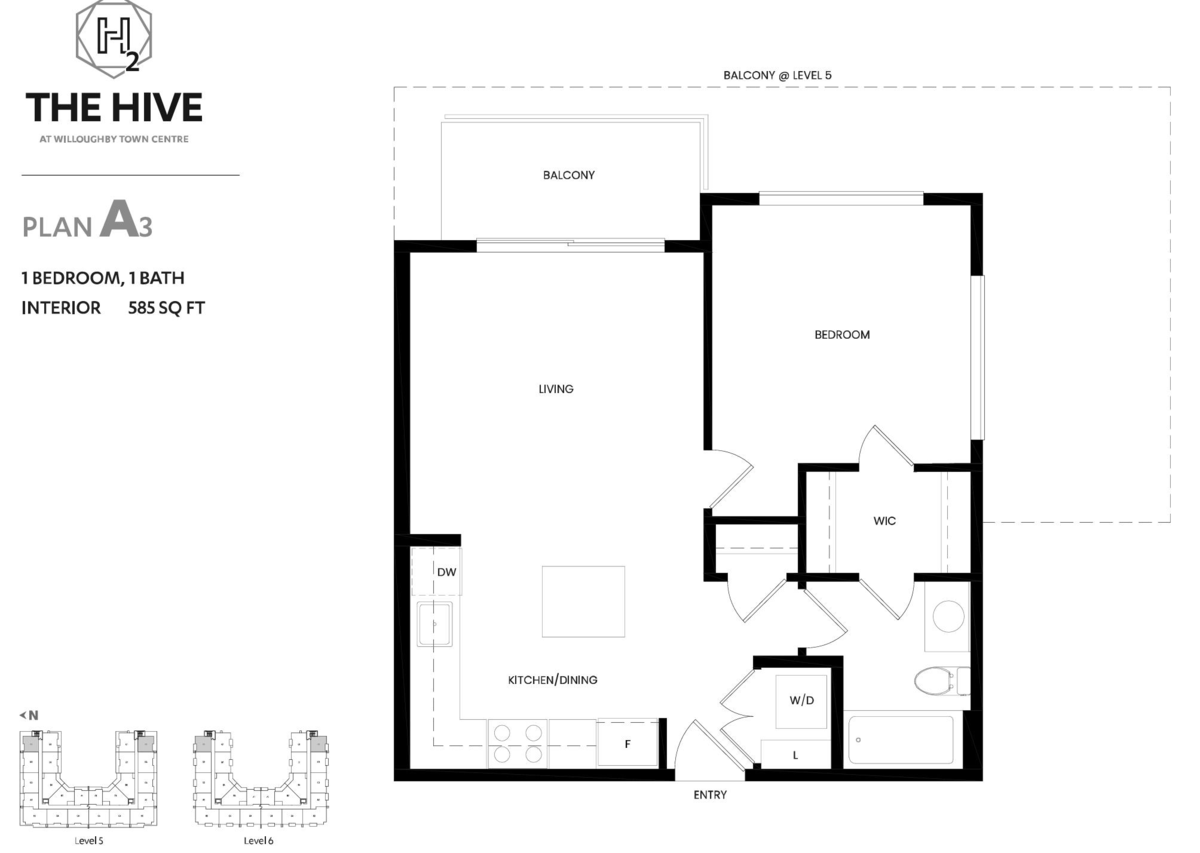 Brand new move-inready, corner 1 bedroom home with 350sf wrap around balcony at the Hive 2, NE facing, built by award winer Apcon Group. Located in Willoughby Town Centre steps away from restaurants & shopping. Shared amenities with fitness center, party room, co-working space, outdoor BBQ & play area. Inspired living built with high quality materials & modern design touches, wide plank laminate flooring, contemporary roller blinds filter natural light, full size front stacking insuite laundry, corner kitchen & island with room for seating, full size stainless steel fridge, gas range and dishwasher. Beautiful bathroom with stylish hardware and undermount sink. Full 2/5/10 year new home warranty. 1 parking stall,1 storage locker & 1 bike locker included. Pets- no size or breed restrictions.
