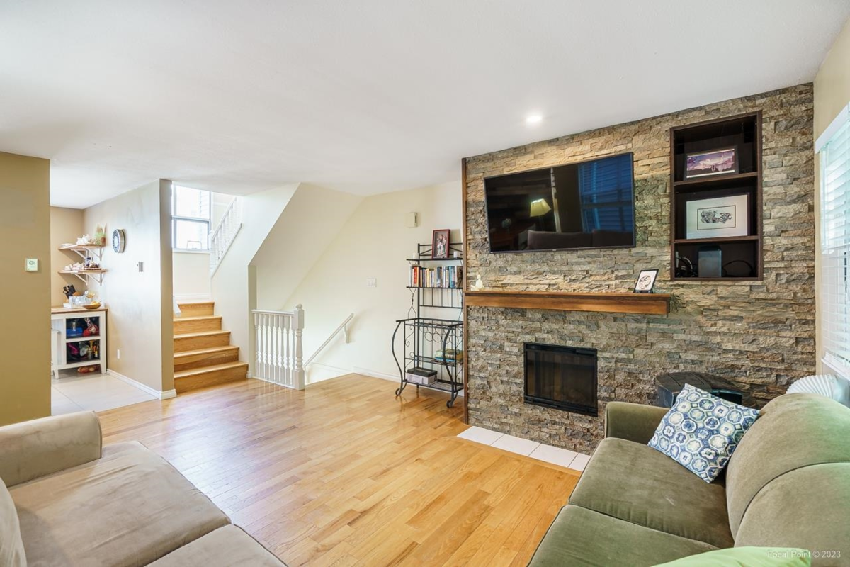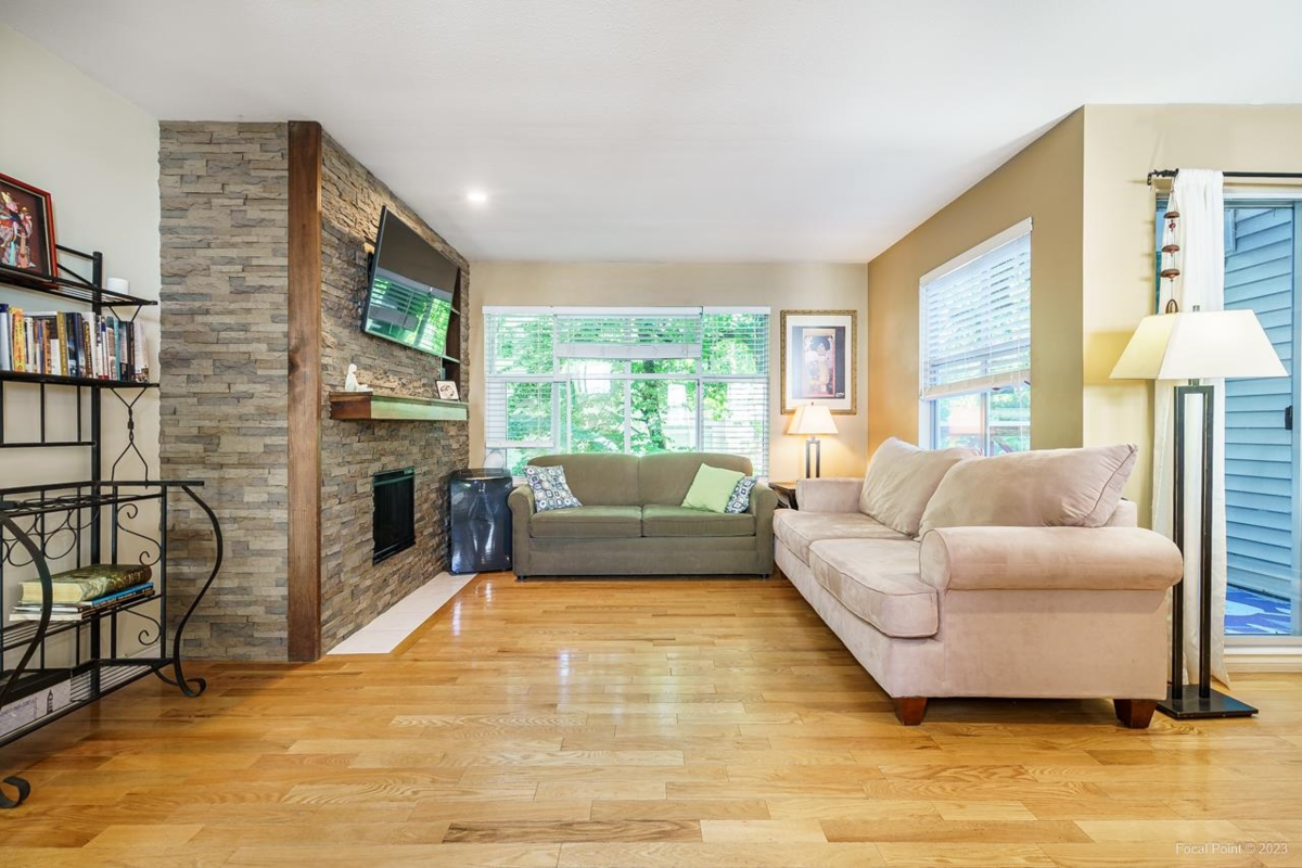 This completely renovated three bedroom, two full bath, three level townhouse is located at the popular "Country Park Estates." Great locations w/steps to Coq River trails & all forms of transportation, schools, the new Community Centre & downtown shops. Main floor features open concept w/formal living rm w/REAL hardwood throughout & ledgestone accented feature wall w/electric f/p. Your large updated kitchen w/eating area & pass through to formal dining rm, has newer cabinets, granite counters & s/s appliances. Deck w/slider off dining rm ideal for BBQ. Two large bdrms & fully updated bath. Down has your 3rd bdrm w/renovated 3pc ensuite bath & access through sliders to your patio and yard. Garage plus additional parking stall included. Shows Great!!