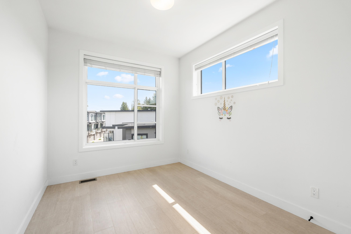 BEST-POSITIONED CORNER END UNIT! 4 Bed + Flex / 4 Bath - BUILT GREEN GOLD Certified townhome in sought-after Clayton, perfectly tucked at the quiet end of the complex with open views and abundant natural light. Offering almost 2,000 sqft. of living space, this home features one of the largest floor plans, with upgrades like central A/C, laminate flooring throughout (including stairs & bedrooms), and custom pantry cabinetry. Functional plan offers an entry-level bedroom with ensuite, ideal for guests or in-laws, plus an upper-level primary with ensuite for added privacy. Side-by-side double garage. Steps to schools, parks, shopping, and future SkyTrain accessibility. A rare blend of location, space, and thoughtful upgrades!