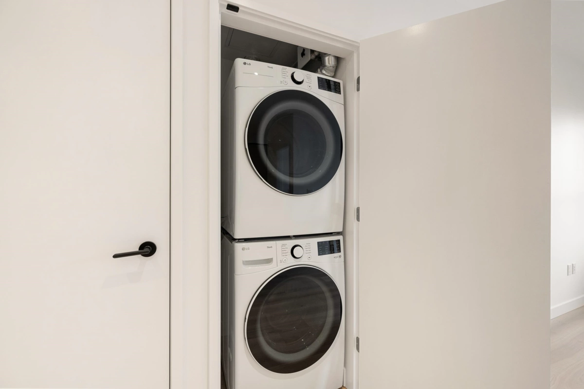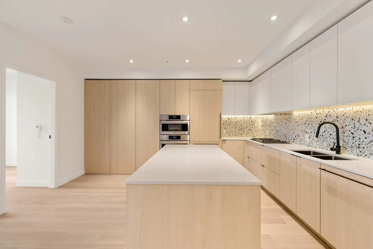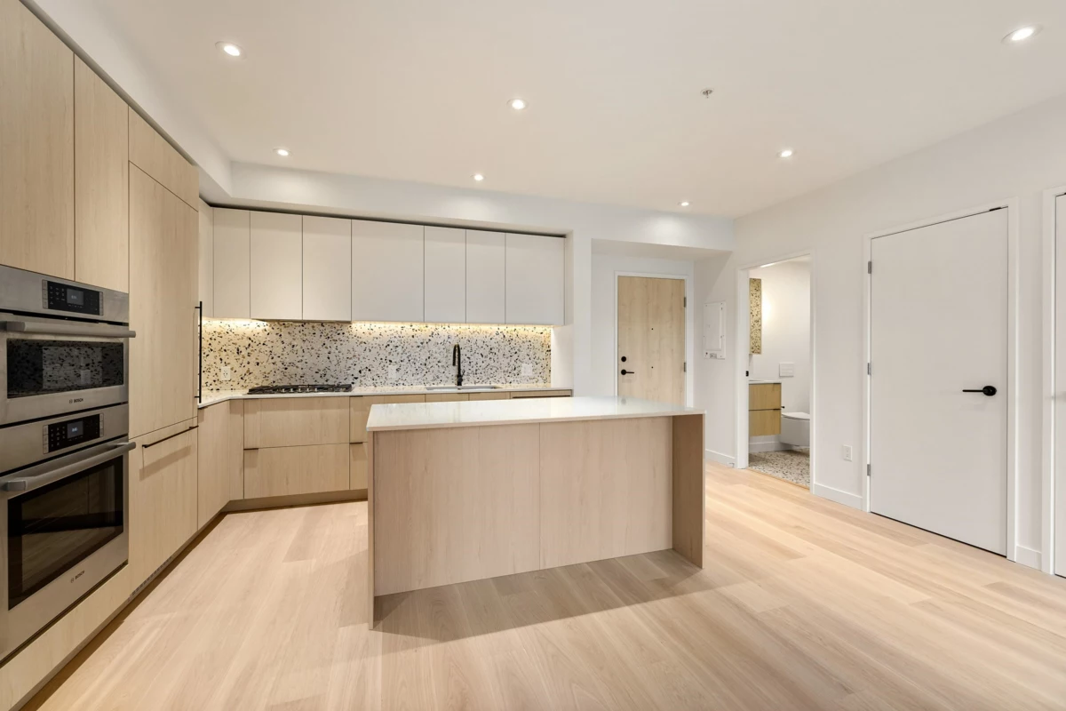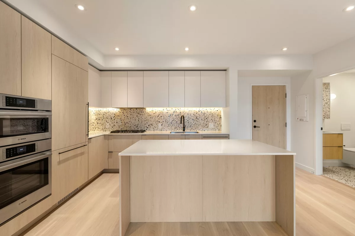 Penthouse living in the heart of Mount Pleasant, with a private rooftop that actually delivers. This top-floor 2 bedroom, 2 bathroom home offers a smart, modern layout and over 700 sq ft of outdoor space split between a main-level patio and an expansive rooftop terrace with gas and water hookups, privacy planters, and views toward downtown Vancouver and the North Shore mountains. Inside, enjoy wide-plank oak floors, custom millwork, high ceilings, oversized windows, and A/C throughout. The kitchen features integrated Bosch and Fulgor Milano appliances and a large island, while both bathrooms are finished with terrazzo tile and matte black fixtures. EV-ready parking, storage, bike locker, and a residents’ lounge on the same floor complete this thoughtfully designed home.