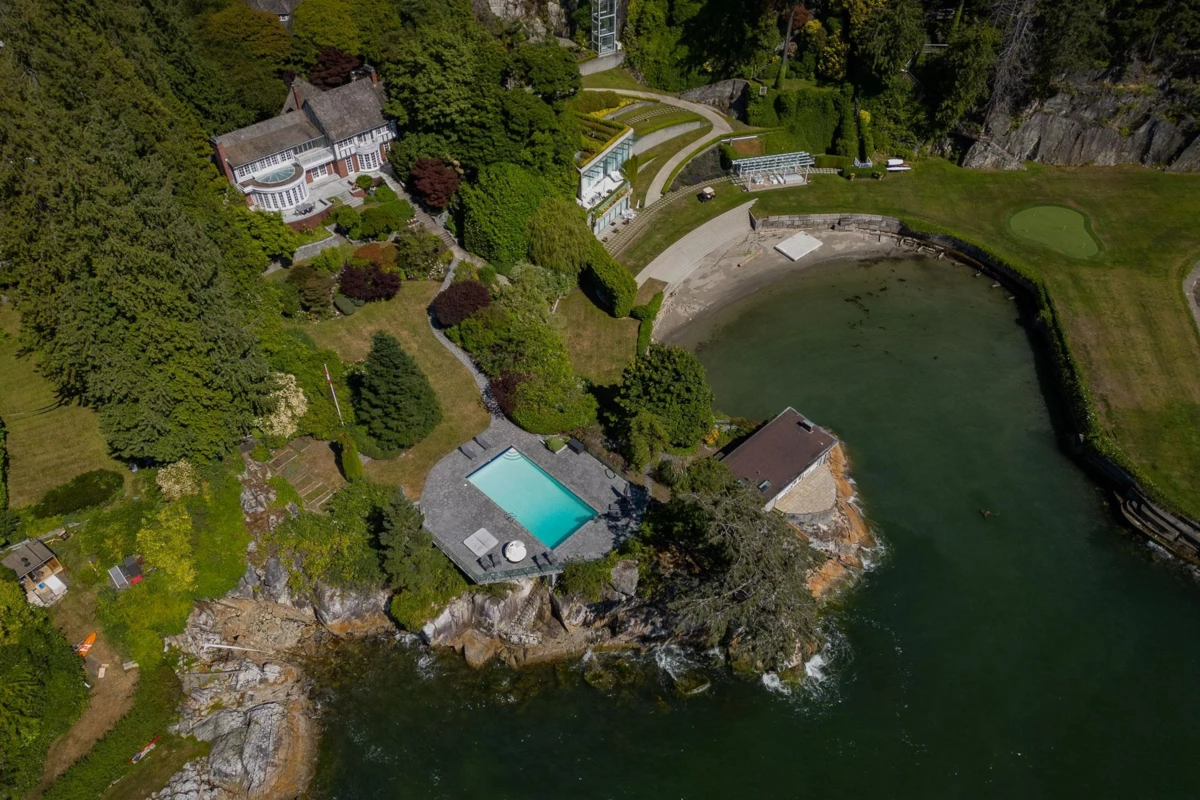 WEST VANCOUVER'S FINEST WATERFRONT ESTATE is situated on a level 1.58 acre S/W facing low bank private property with over 300 ft of oceanfront and private sheltered sandy beach in a setting that is simply magical! The main home offers approx. 8000 sq/ft of living in addition to a 2 bedroom coach house and private beachside studio. Huge primary rooms with wide open kitchen, family, living, and dining areas all open to the terraced patios flowing out to the sprawling lawns and tranquil gardens connecting to the stunning poolside setting on your private peninsula of property. The traditional grand floor plan features 6 bedrooms, 8 baths, a stunning master suite with glorious balconies overlooking the expansive estate, and close-in island views that go forever! One-of-a-kind World Class Dream!