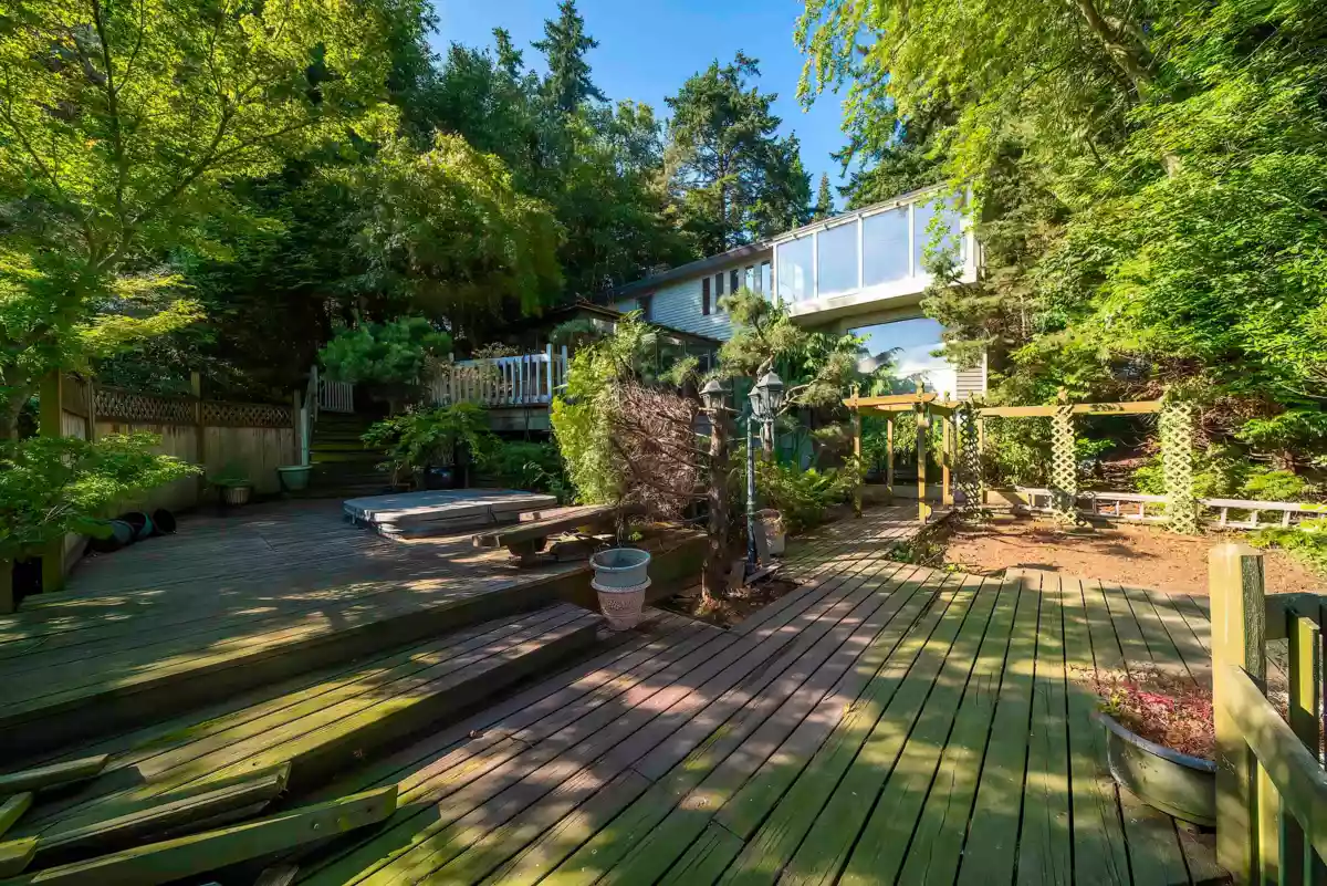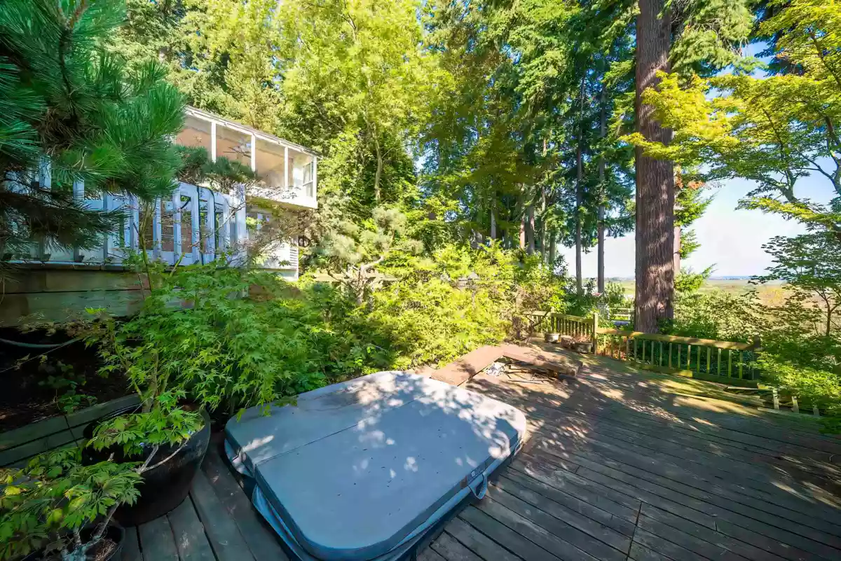 The spacious oasis sits on the half acre lot in the prestige area of Panorama Ridge. This unique west coast style home offers beautiful views of ocean, Mt Baker, and Sunset from main & upper levels. It features private yards w/ tasteful garden year round , multiple decks for peaceful relaxation, open-air hot tub in nature surrounding, 5500+ sqf living area, extra large 4 bedrooms, commercial grade heating system, luxurious appliances, and extra deep garage. 190sqf greenhouse is definite the florist's love. Updated primary bathroom and hardwood floor upstairs. Updated 2 bedrooms suite w/laundry & separate entrance in basement. Walk to Colebrook Elementary. Open house: Feb 1, Sunday, 2-4pm.