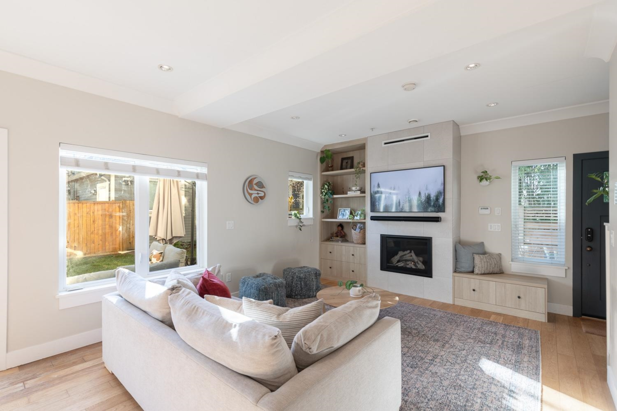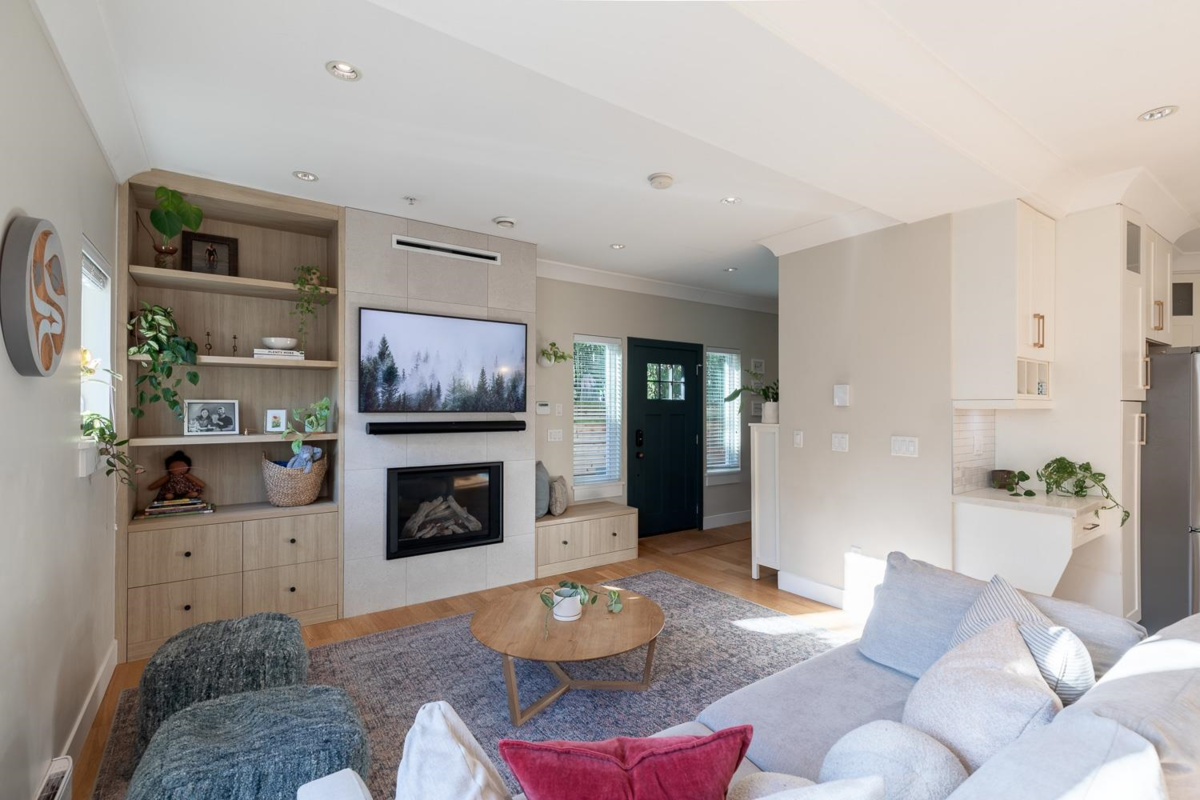 Welcome home to this custom designed 4-bed/2.5 bath 1/2 back duplex with a S-facing backyard! Architecture by the highly esteemed Birmingham & Wood, this home boasts a spacious and open floorplan with 9' ceilings, a gas fireplace in the living space, sizeable dining area, and a well-equipped kitchen with white shaker cabinets, caesar stone-counters & stainless steel appliances - perfect for those who love to entertain. The 2nd level offers 3 generous bedrooms, a full bathroom, and laundry nook. Up one more level you will find the primary suite flooded w/natural light, vaulted ceilings, a spa-like ensuite & french doors leading to your private deck. Comes with a 1-car garage. An amazing neighbourhood, you are close to restaurants, cafes, shopping, parks, transit, and more!