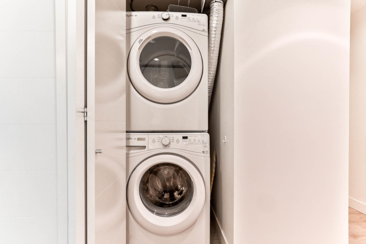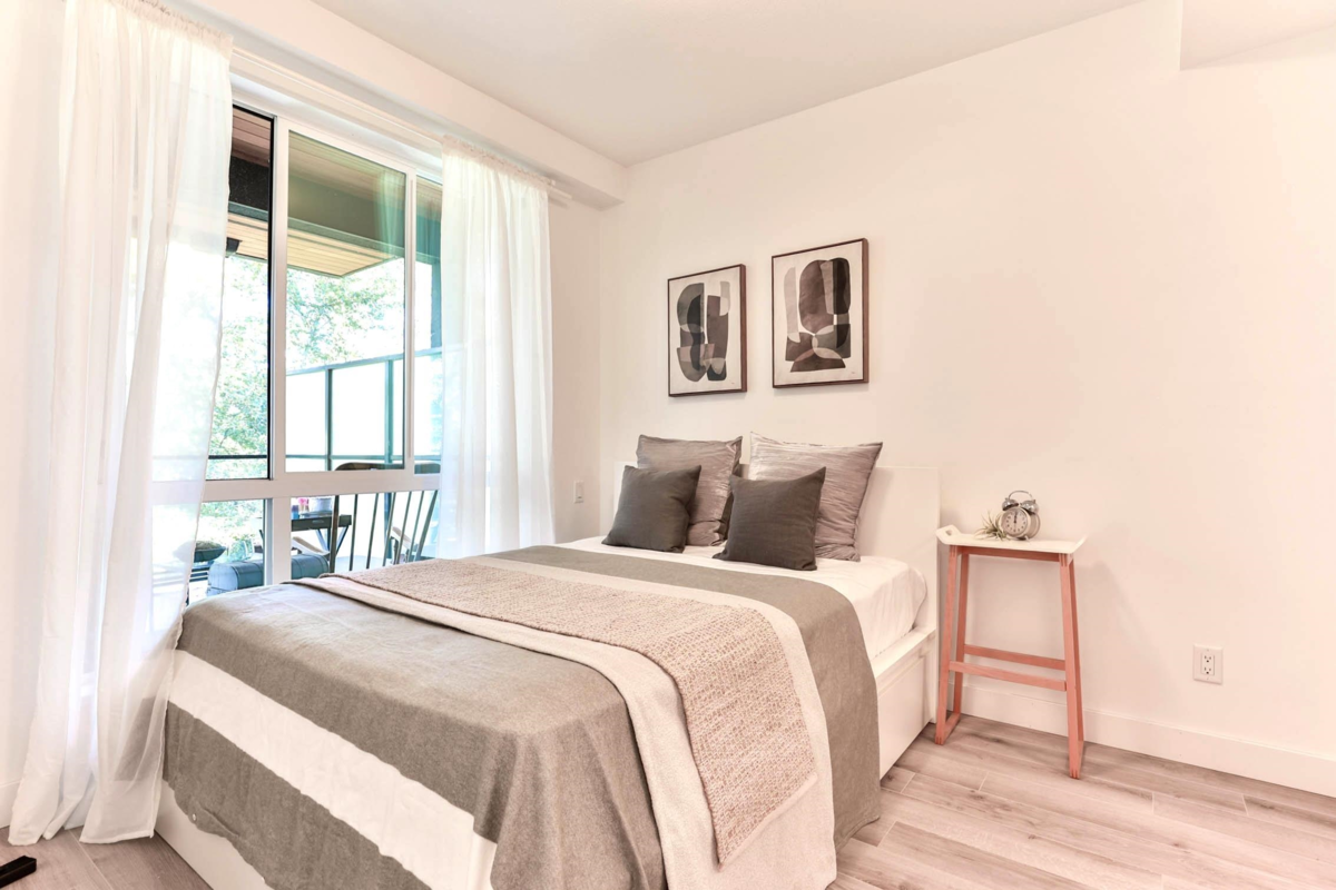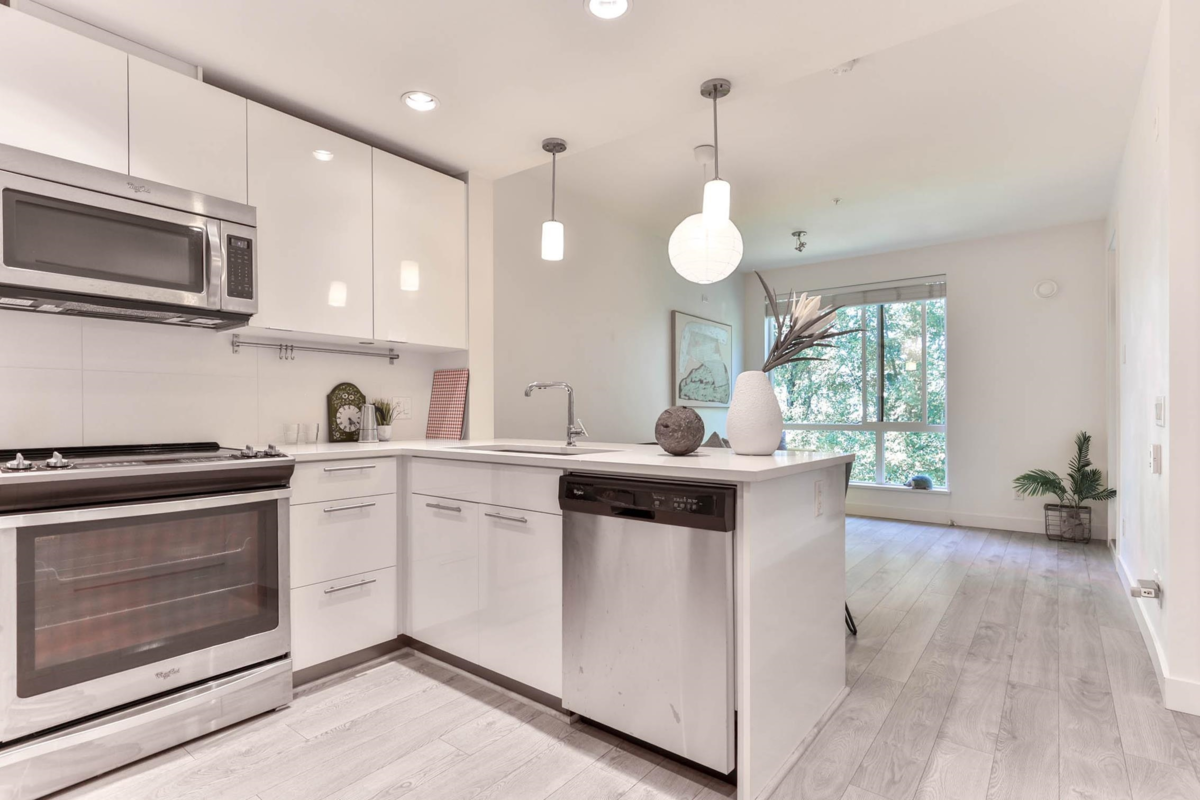 Experience contemporary West Coast architecture at its finest in this immaculate 1 bed + DEN condo, located in a LEED Gold certified building byAdera. This unit boasts high ceilings and an open kitchen layout with stunning views of the creek and Mosquito Creek Trail. The property offers aserene and private living experience with western exposure. The condo features laminate flooring throughout and is equipped with stainless steelappliances. The spacious den is versatile, suitable for use as a child's room or home office. Residents can enjoy premium amenities including a well-appointed gym, a yoga/bike room, and ample storage with one large locker and one parking space. Additionally, air conditioning can be easily installedfor added comfort. *O/H: Jan 4 (Sun) 2-4PM*