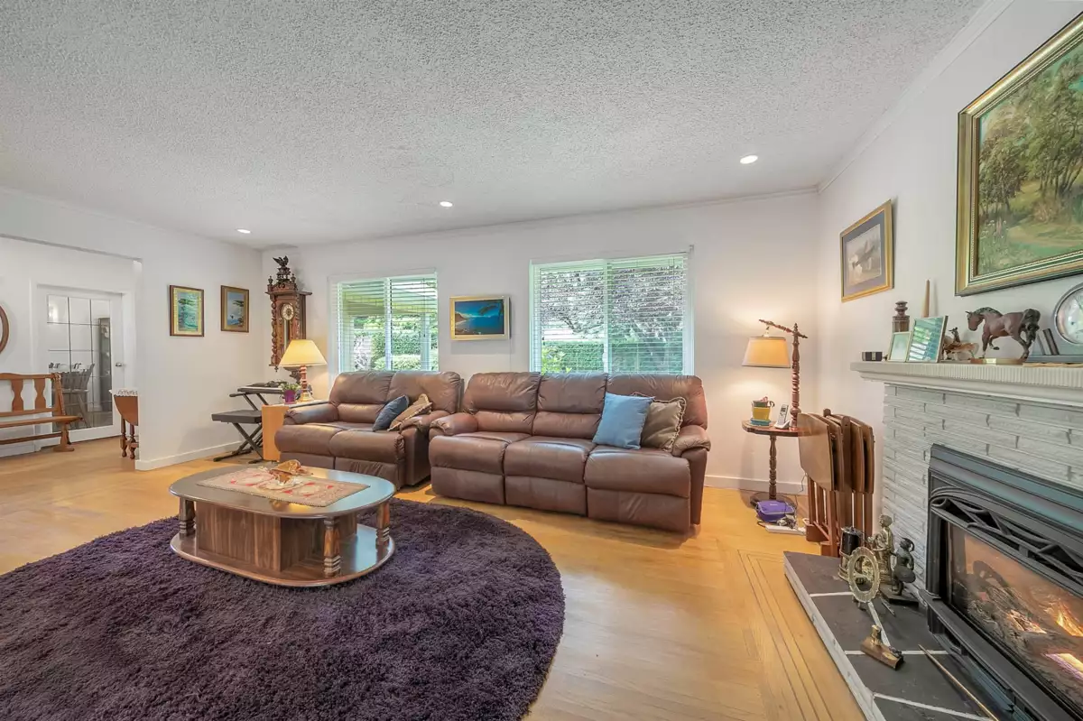 Prime central location within walking to distance to transit and all local amenities in Tsawwassen! Warm and inviting 3 level split 2276 sq.ft. family home featuring 3 bedrooms, original hardwood floors, newer vinyl windows and updated 5 pc bathroom upstairs. The bright kitchen with modern backsplash & stainless steel appliances is adjoined to a large eating area. There is a spacious living room with gas fireplace which overlooks the family room and dining area below. French doors open out to the huge sun drenched SOUTHERN exposed rear garden with a covered patio. Bonus flex room with separate entrance & 3 pc bath can be used as a 4th or primary bedroom. Recent updates include BRAND NEW ROOF(2025) furnace, A/C ( 2021), eco walkway in front and rear patio area.