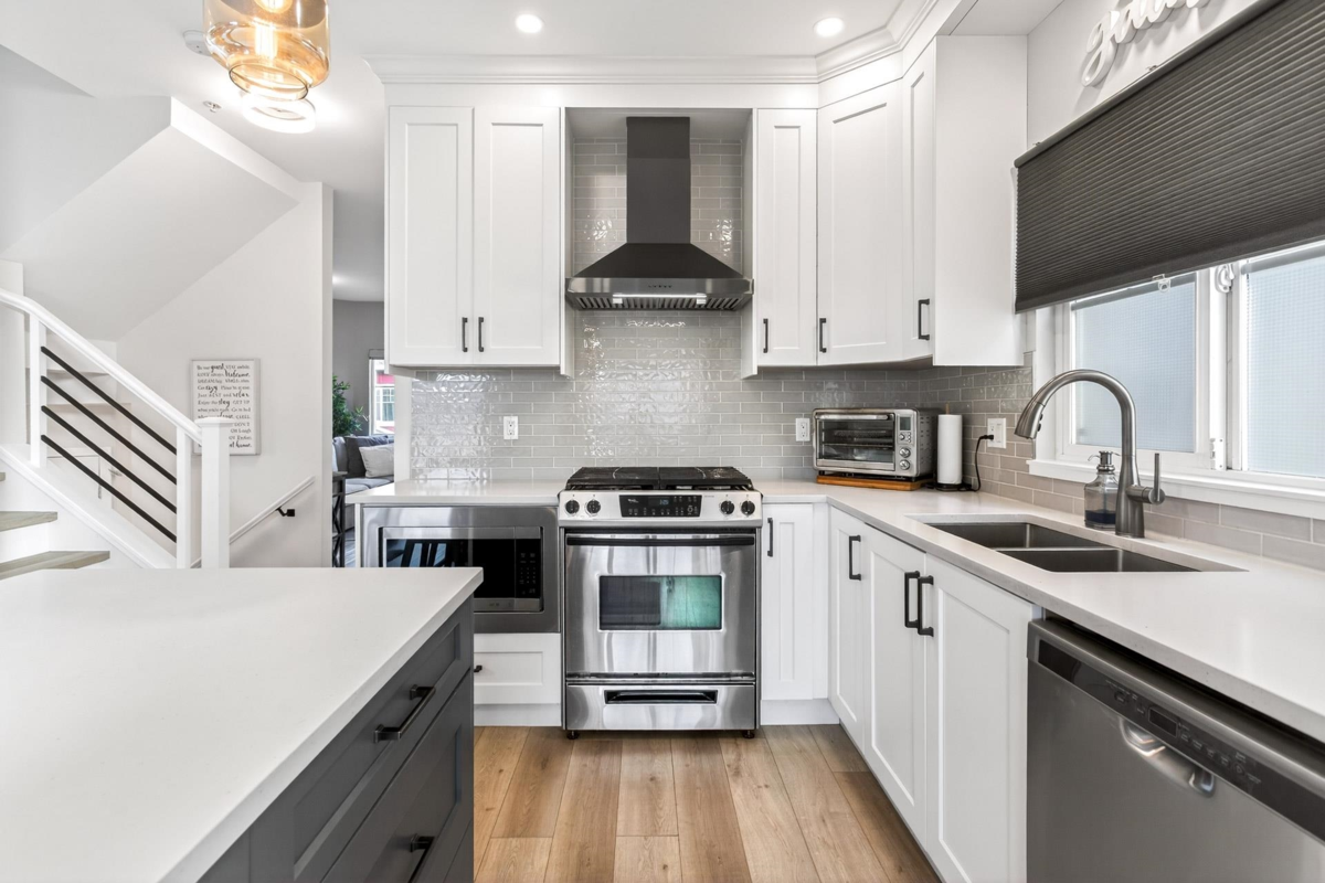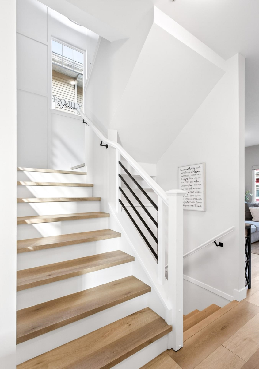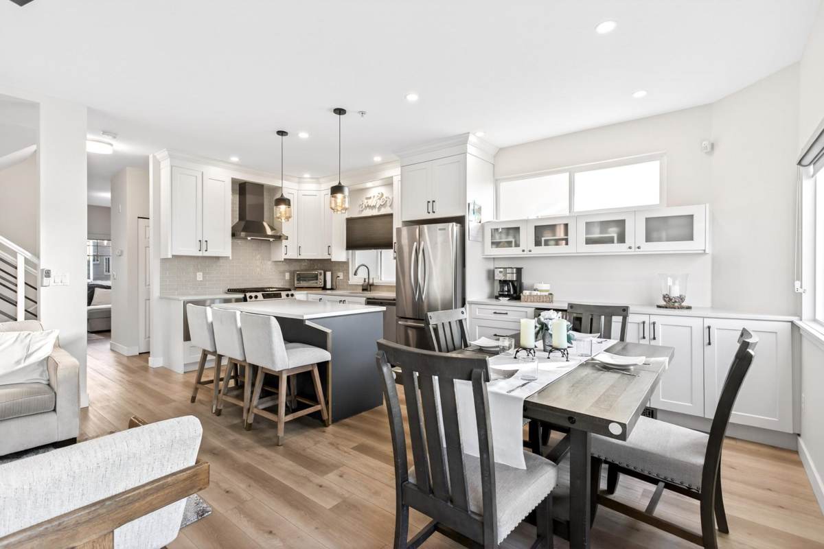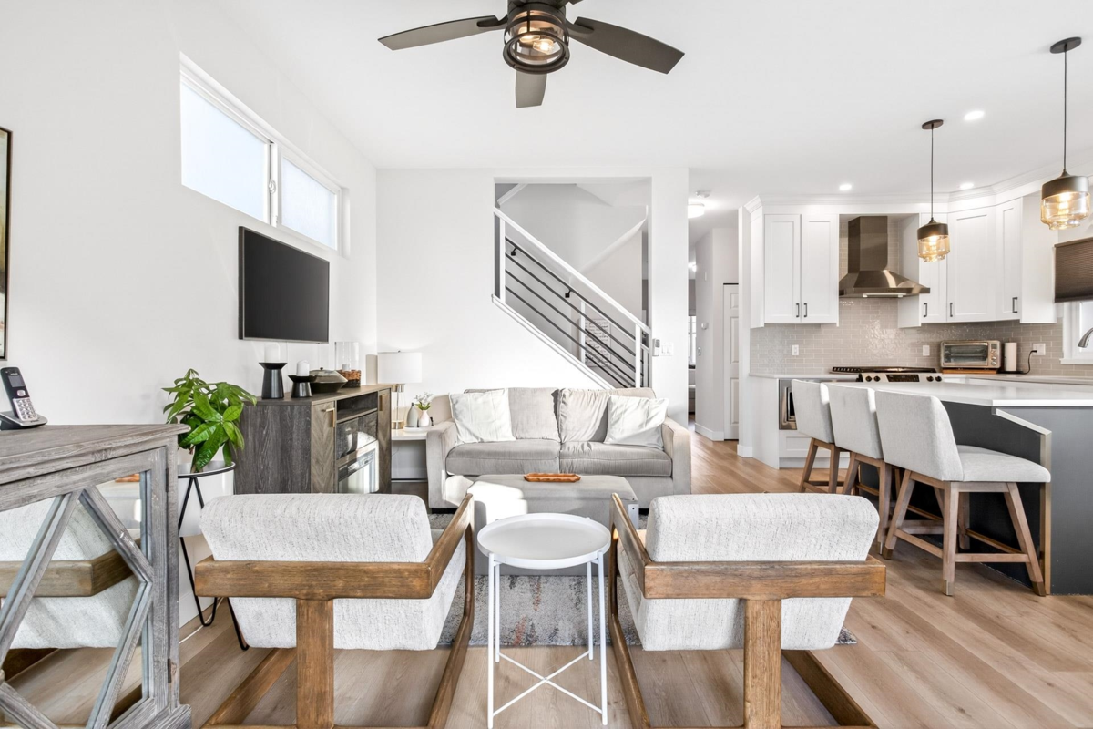 Spacious Detached Townhome. 4 bedrooms plus den, 4 bathrooms. Gorgeous improvements throughout, including luxury vinyl flooring & designer paint colours. Large updated kitchen featuring white shaker cabinets, quartz countertops, stainless appliances, island, dining area, family room with walk out to BBQ deck. Living room with cozy electric fireplace. Spacious Primary suite with walk in closet and spa like ensuite. Basement has a 4th bedroom, full bathroom, huge rec room & separate entry, ideal for families or guests. Enjoy the fully fenced yard with patio. See it, love it! Book your private showing today! OPEN HOUSE Sat Jan 24th 2-4pm