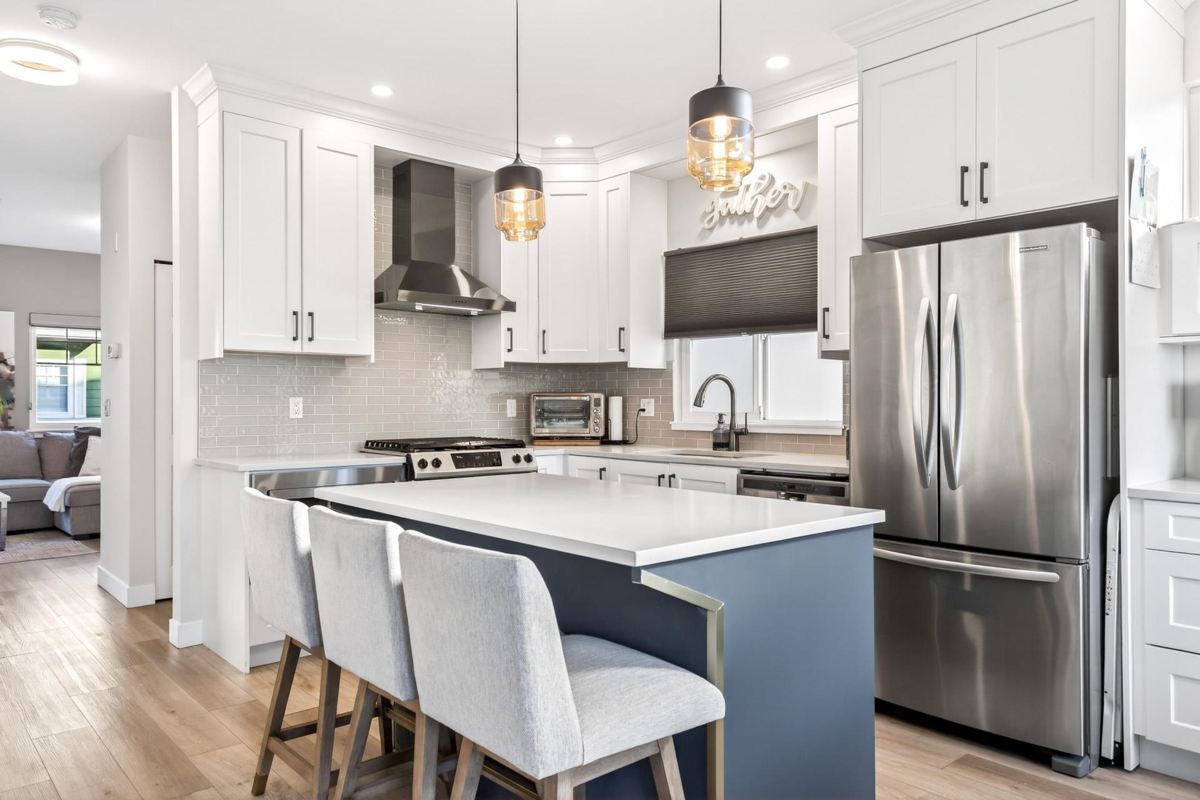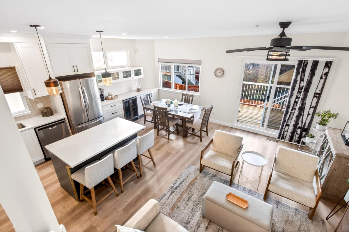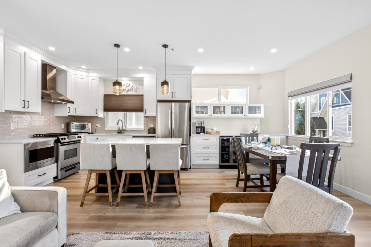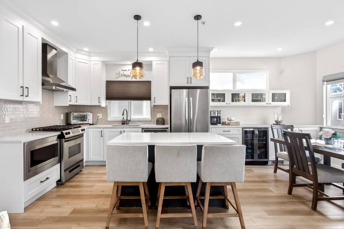 Spacious Detached Townhome. 4 bedrooms plus den, 4 bathrooms. Gorgeous improvements throughout, including luxury vinyl flooring & designer paint colours. Large updated kitchen featuring white shaker cabinets, quartz countertops, stainless appliances, island, dining area, family room with walk out to BBQ deck. Living room with cozy electric fireplace. Spacious Primary suite with walk in closet and spa like ensuite. Basement has a 4th bedroom, full bathroom, huge rec room & separate entry, ideal for families or guests. Enjoy the fully fenced yard with patio. See it, love it! Book your private showing today! OPEN HOUSE Sat Jan 24th 2-4pm