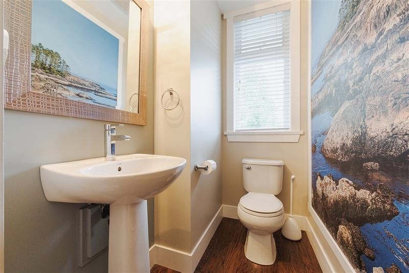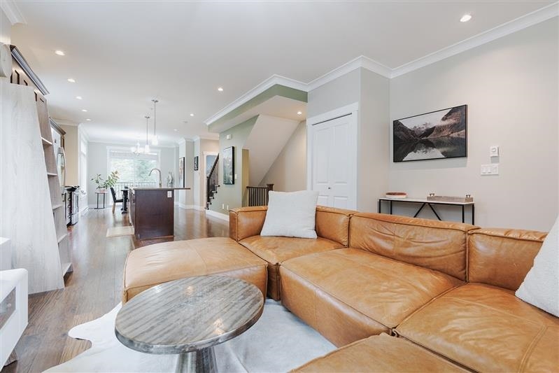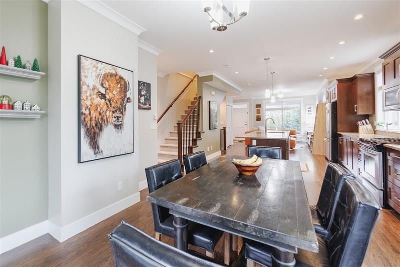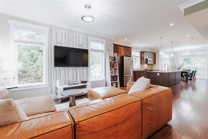 Welcome home to 'Two Birds' by award winning luxury home builder, Wallmark Homes. This end unit is just over 1500 sf with lots of extra windows creating an inviting oasis for all who visit. Open concept main floor with wood flooring. Stone counters, stainless steel appliances and a large kitchen island make it ideal for entertaining. New carpet on stairs and new flooring upstairs. Three bedrooms and two full bathrooms up, including a large primary suite with walk-in closet and well designed ensuite bathroom. There is a tandem double garage, plus lots of street parking out front. Two decks for your enjoyment. Great location! Walk to Alexander Robinson and Kanaka Creek Elementary schools. Bus stop right across the street makes getting around easy.