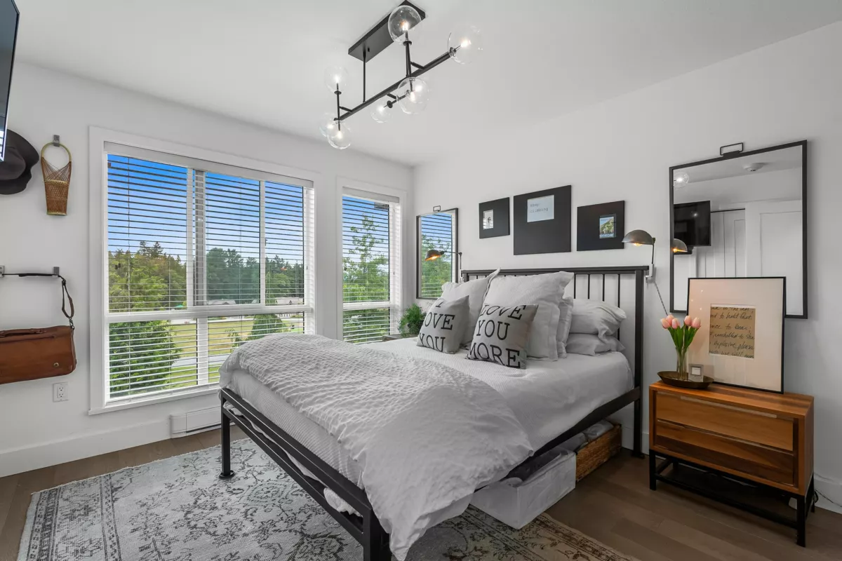 The Grandview at South Ridge blends nature and modern design. From the peace and privacy of this rare corner unit, you're just minutes from life's luxuries and essentials. Boasting 3 outdoor living spaces, enjoy panoramic mountain views from floor to ceiling windows and 532 sq ft covered rooftop deck. Main floor features 9’ ceilings, AC, chef's kitchen with spacious island and two living areas. 4 bedrooms + den. Engineered hardwood floors throughout. Double garage, EV hookup, outdoor parking pad. Close to transit, Hwy 99, border, White Rock and Crescent Beaches, South Ridge, Grandview Heights and Sunnyside schools. Walk to nearby shopping, playground, dog park. Clubhouse with pool, hot tub, fitness centre, gym, theatre, lounge and BBQ. 10-year warranty remaining.