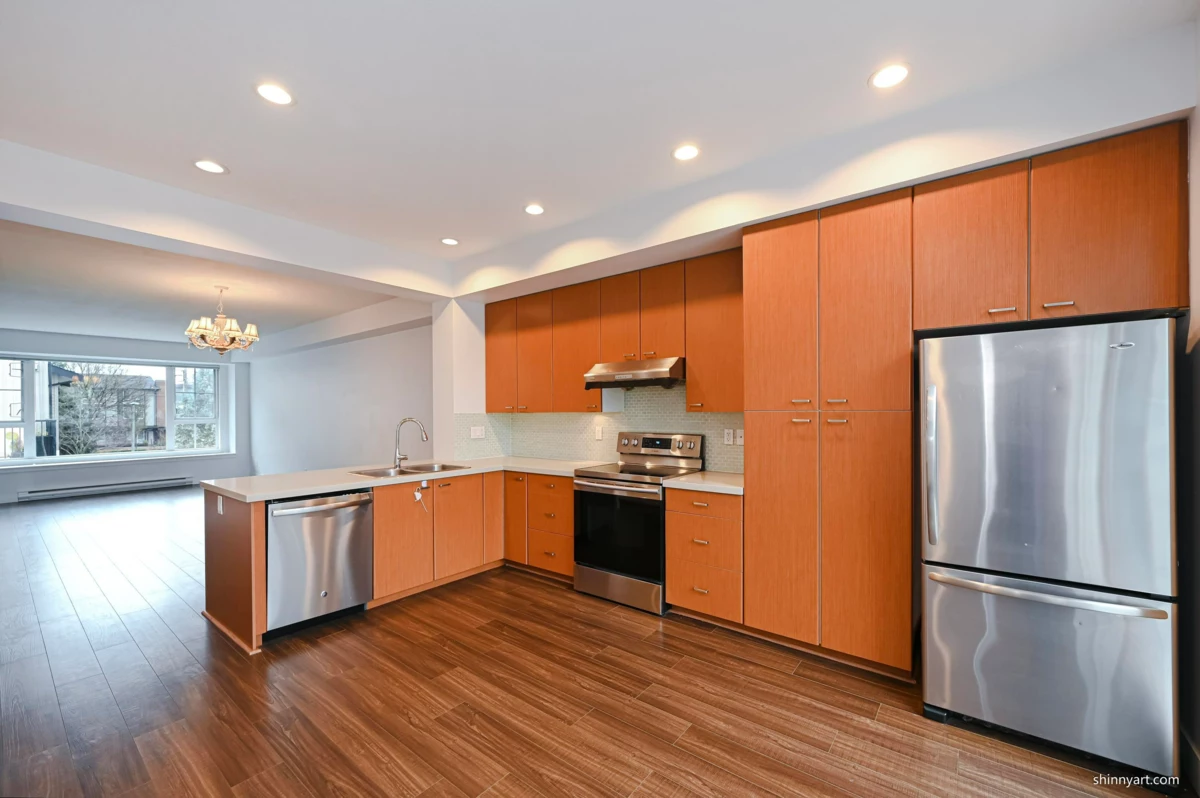 Beautiful home in Glenmore! 3 bed, 2 bath TH situated on the quiet side of the complex, with visitor parking . The functional main floor provides an excellent layout for life, with living room, kitchen and dining area flowing out to private patio. Perfect for entertaining and easy access from the BBQ to the Kitchen that features S/S appliances,. Upstairs, the primary bedroom is large and spacious, with high ceilings, walk in closet and double sinks ensuite. Two more bdrms upstairs allow for your family to grow, or space for home office. Glenmore provides some of the best amenities in Grandview, including a clubhouse, indoor hockey rink, and a large outdoor pool and hot tub. Quick walk to transit, hundreds of shops& restaurants ,future COSTCO & Schools are close by. and easy access to HWY
