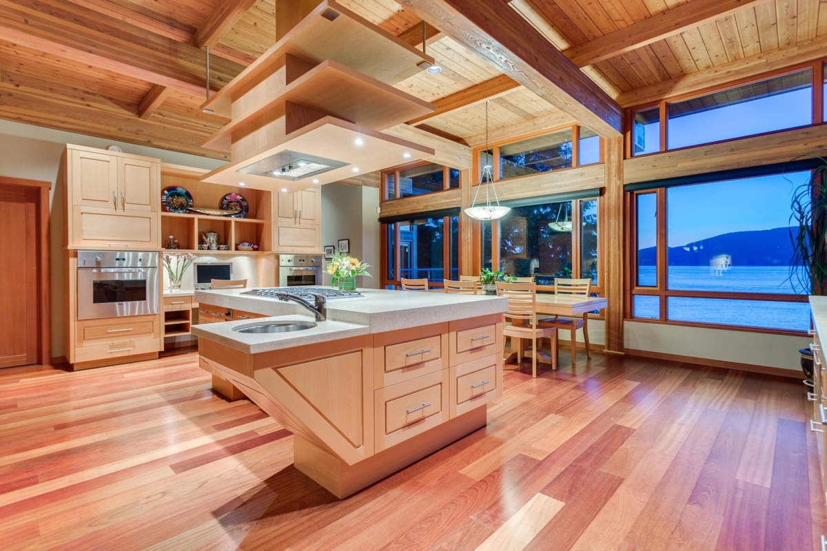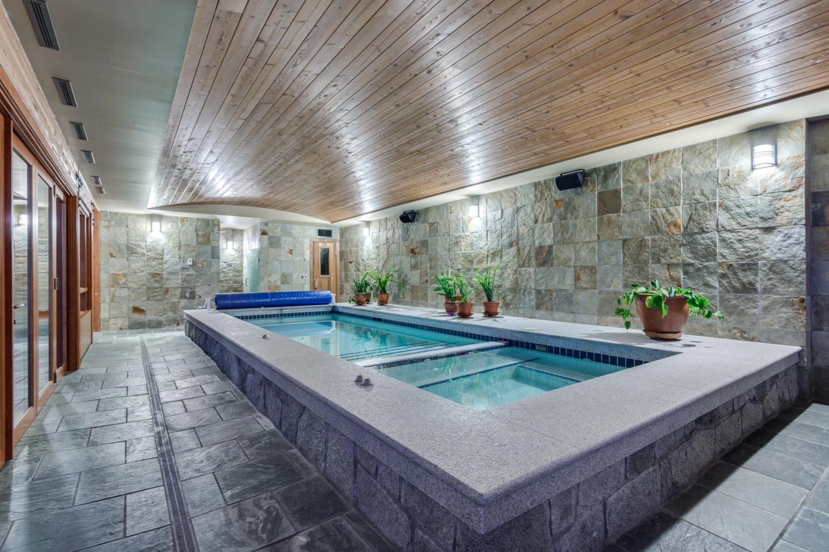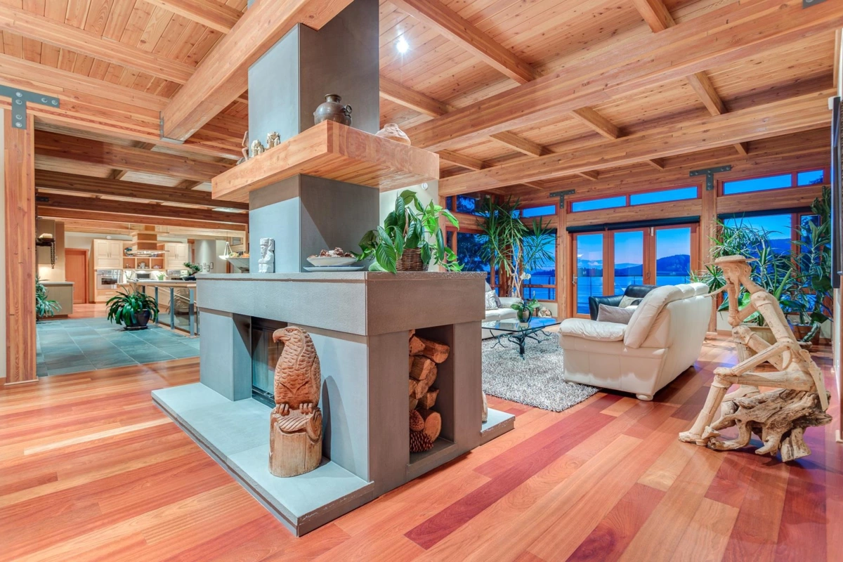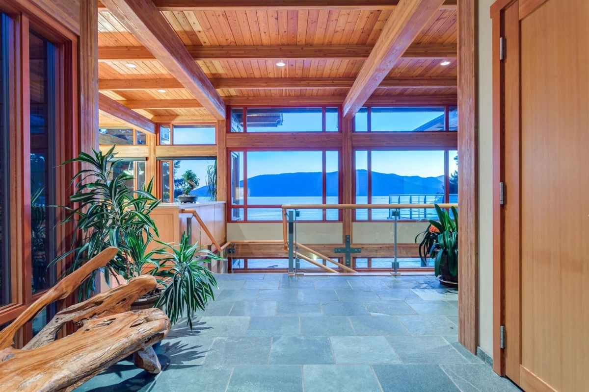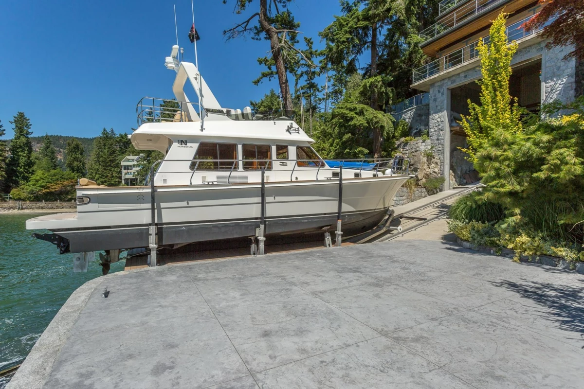 Exceptional West Coast post and beam west facing WATERFRONT ESTATE designed and custom built to perfection, this is a truly a one of a kind masterpiece! Offerring nearly 13000 SF with 3 levels of living space, 5 bedrooms, 7 baths, 4600 SF of terraced slate patios, outdoor pool/ hot tub, indoor pool/ hot tub, 4 level indoor elevator, geo thermal radiant heating, 8000 gl. front entry koi pond, 5 car heated garage, and an incredible 50 foot attached indoor private yacht garage with private elevator access believed to be the only of its kind in North America! Gourmet chefs kitchen and cabinetry by Redl Kitchens, Brazilian cherry floors and floor to ceiling glass! The 31600 SF West facing private estate and this home are truly World Class like no other! Amazing!!
