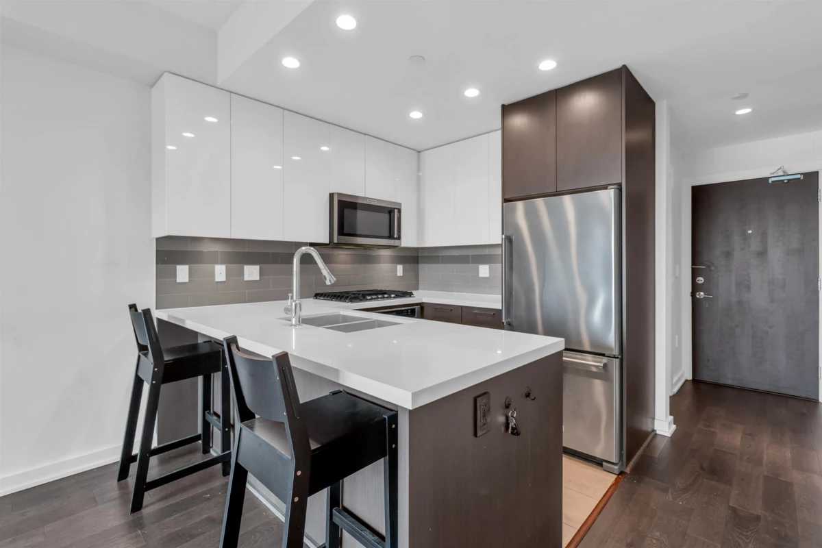 RIVA 2 by award-winning Onni Group, designed by Yamamoto Architecture — an excellent investment opportunity in the heart of Richmond. This spacious 1-bedroom + den offers a highly efficient open-concept layout with extra-height ceilings and a quiet courtyard exposure. Features include KitchenAid stainless steel appliances, soft-close wood cabinetry, engineered flooring, air conditioning, and NuHeat flooring in the primary bathroom. Resort-style amenities enhance tenant appeal, including an indoor pool, hot tub, sauna, steam room, gym, and clubhouse. Prime location with easy access to SkyTrain, transit, Lansdowne Mall, Richmond Centre, T&T, restaurants, the Oval, Fraser River paths, and YVR. One parking and one storage locker included.