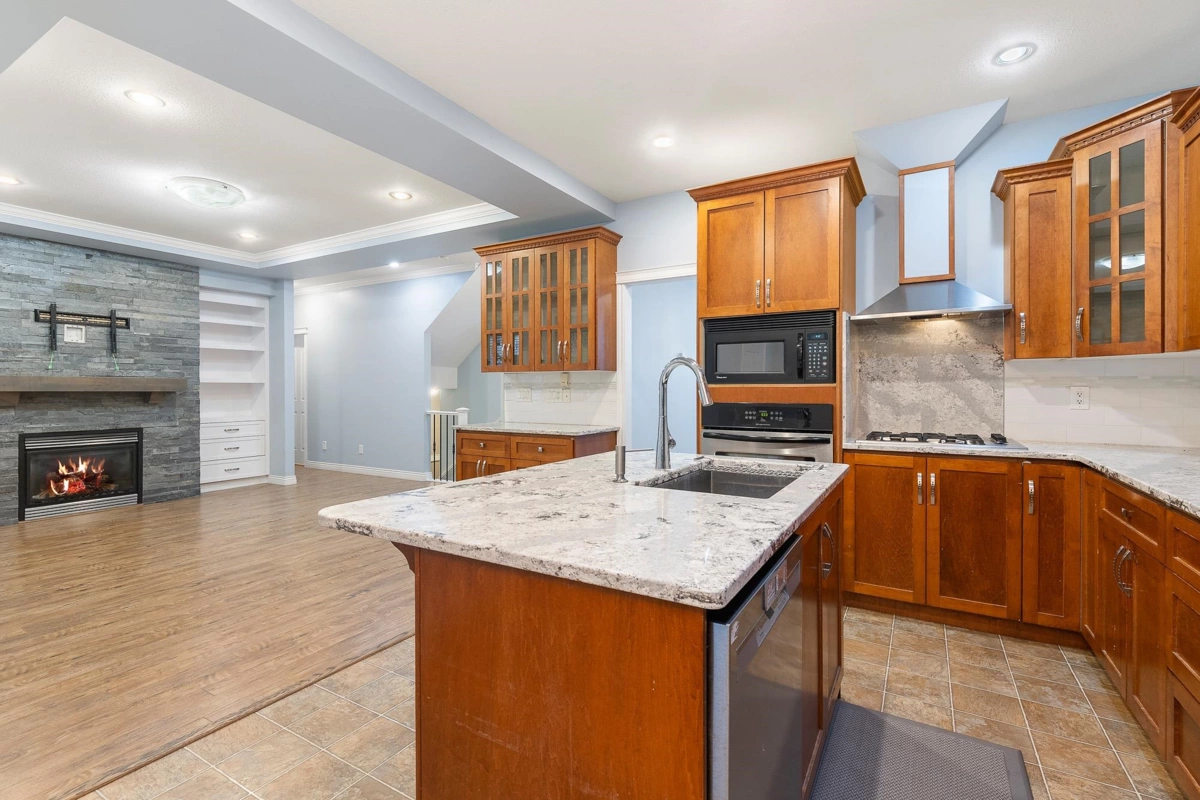 LUXURIOUS FAMILY HOME boasting 3,630 sq.ft - PLENTY of room for all your families needs! High ceilings give the entrance & living area a GRAND feeling w/an elegant gas f/p inviting you in. Find your way into the OPEN CONCEPT family room, kitchen & dining area. There you will find ANOTHER f/p w/MODERN stone accent wall & GORGEOUS white b.i. shelving. The MASSIVE kitchen feat. b.i. oven, microwave, rang top, large island & GENEROUS counter space. A HUGE master bedroom w/electric f/p, W.I.C. & 5 pc ensuite w/dual vanity & JETTED TUB is the IDEAL spot for your relaxation needs! 3 more beds & 2 FULL baths up make this the PERFECT layout for big families - all w/walk-in closets! 2 bed bsmt suite w/SEP. ENTRY & LAUNDRY is an EXCELLENT choice for those w/in-laws OR as a mortgage helper - STUNNING!