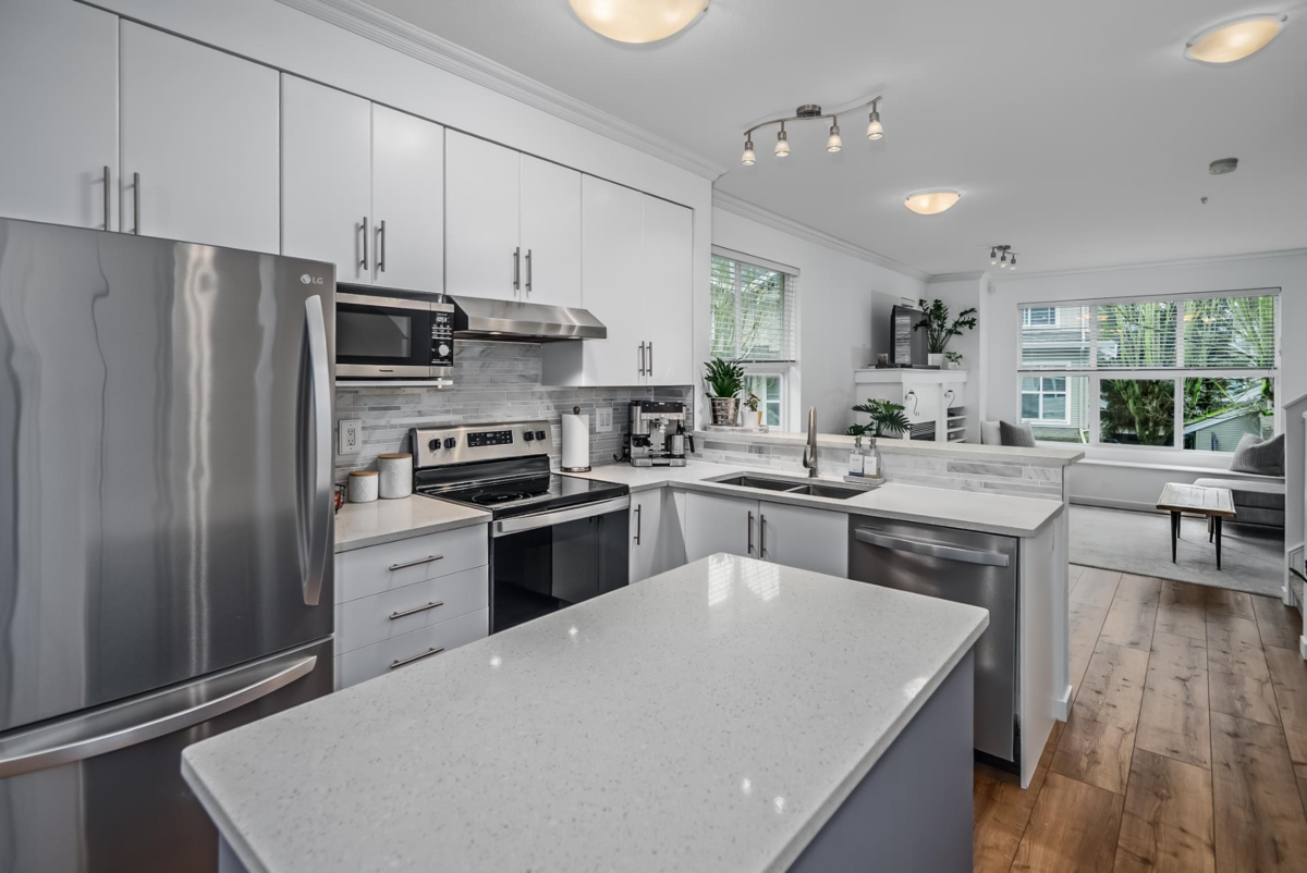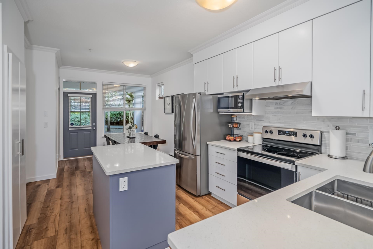 This bright, Willow Edge END unit townhome is immaculately maintained & offers the best of family living. The open concept main floor boasts 9-foot ceilings, POWDER ROOM, fresh paint, newer laminate flooring, & gas fireplace. The kitchen features upgraded stainless appliances, newer counters, refreshed cabinets, spacious eating area & an island…perfect for entertaining! 3 bedrooms up, newer carpets, & 2 baths with updated sinks & counters. Enjoy a level walkout from the kitchen to the backyard patio, kids’ park, greenspace & walking path. Parking for 3 vehicles includes a double tandem garage (with storage) & a long driveway. Quiet location just minutes to Costco & Willowbrook’s many shops & restaurants! 2 pets allowed.