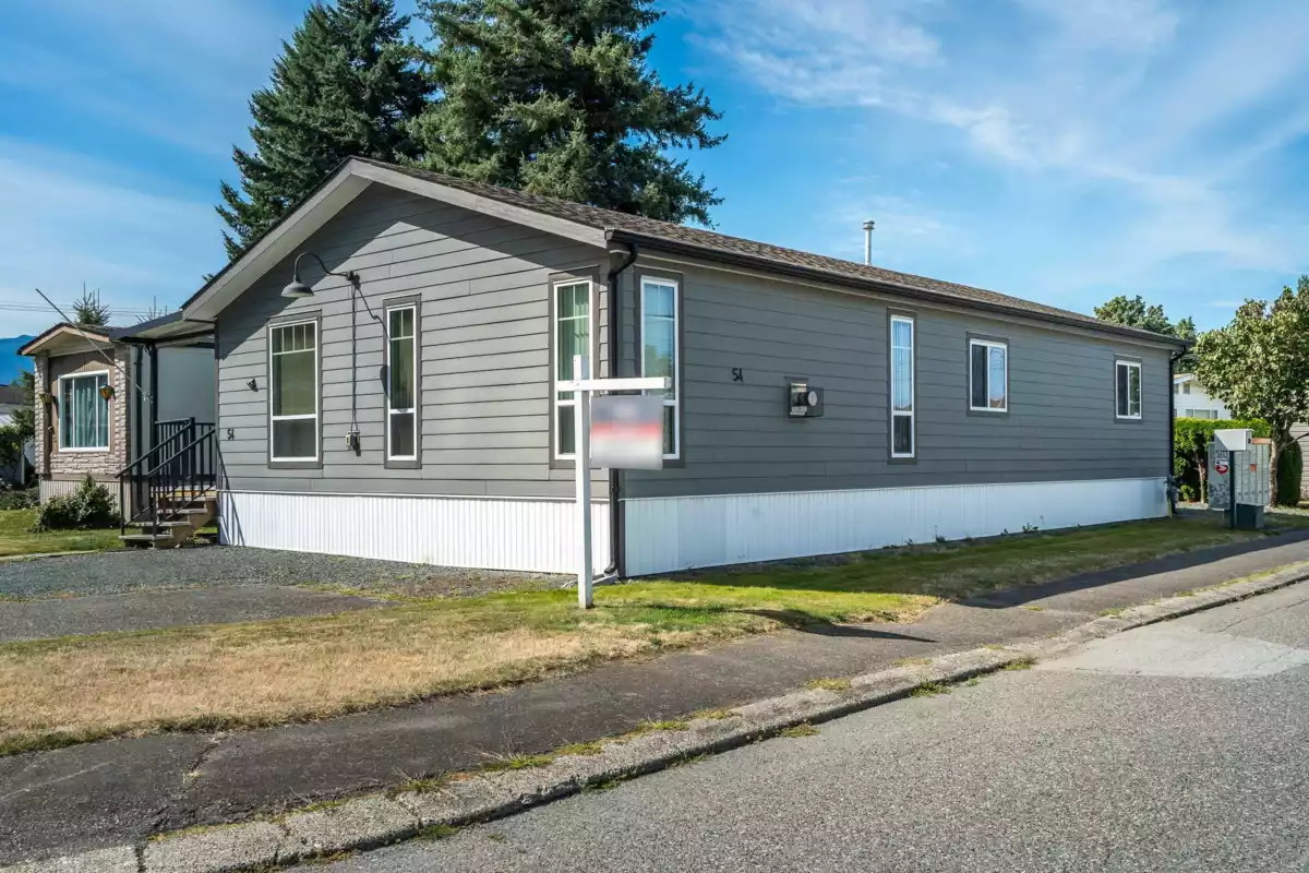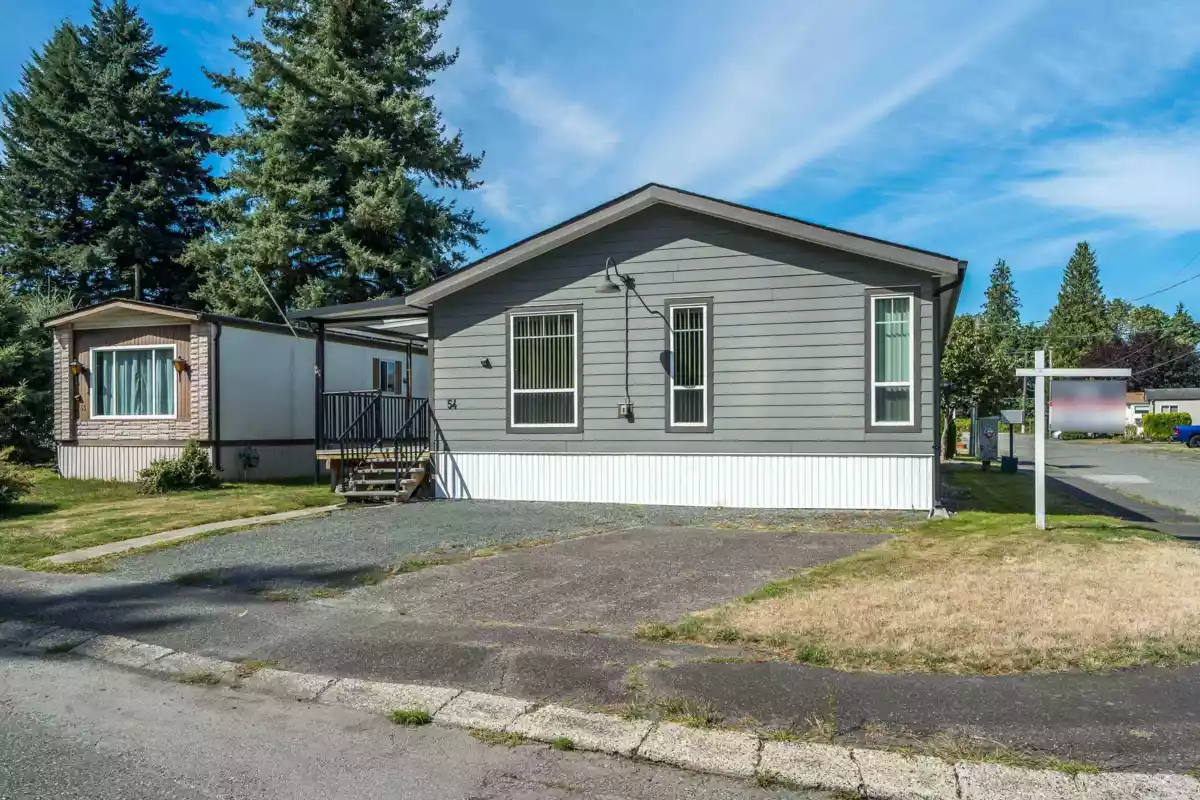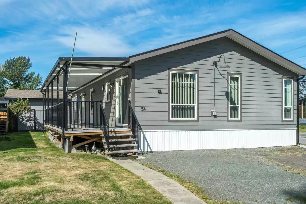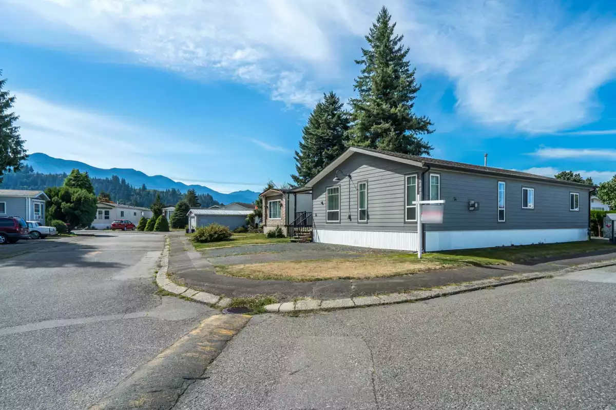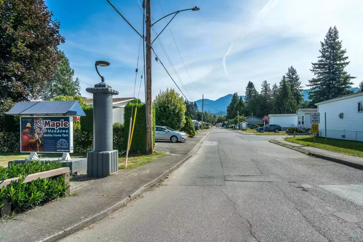 Fantastic newer style manufactured home in popular Maple Meadows. 3 bedrooms or 2 bedrooms and a spacious den. Open kitchen/family room concept with vaulted ceiling in Living room offering a cozy gas fireplace and plenty of windows for natural light. Deluxe 5 pce ensuite in primary bedroom with separate bathtub, walk in shower and additional closet space. Nothing to do here but move right on in. Enjoy the air conditioning for everyday comfort. Huge entertainers 40'x7'6 sundeck fully covered with great views of surrounding mountains. This corner lot offers plenty of parking options with access to the 16x16 shop with heat and power. Great for hobbies or additional storage for the toys. Ready for quick possession. Restricted to 45+ for age and one small dog allowed with managers approval.