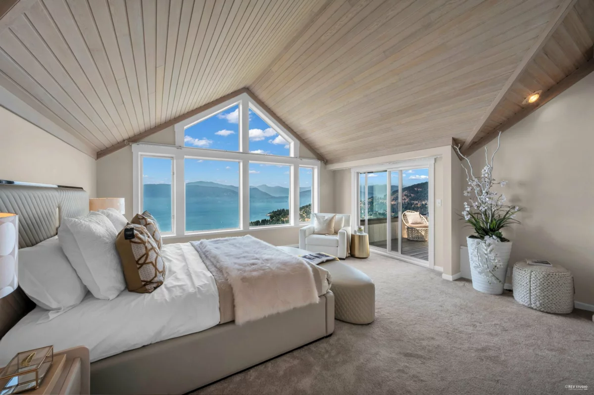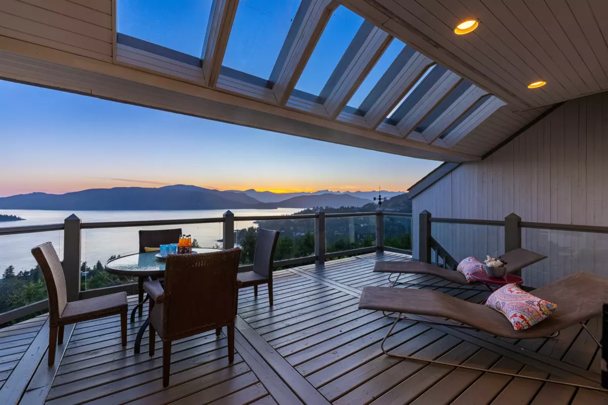 A stunning custom-built residence designed by Hlynsky Architecture, nestled in Upper Caulfeild neighborhood. This beautifully maintained home offers breathtaking panoramic views of the ocean, coastline, and surrounding islands from nearly every room across all three levels. This 4-bedroom, 3-bathroom home with almost 4,000 sq ft combines timeless elegance with modern comfort, soaring 22 foot ceilings in the living and dining rooms create a grand yet relaxing atmosphere. The gourmet kitchen flows seamlessly into the family room and out to a private patio—perfect for year-round entertaining. Recent upgrades include newer appliances, carpeting, a new deck, roof, and fresh exterior paint. A short walk to Caulfeild mall, Rockridge Secondary.