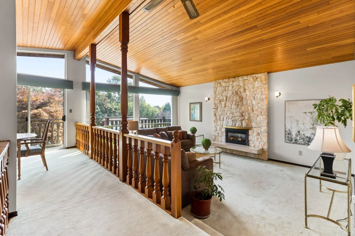 This 4 bed, 3 bath Parkcrest home offers 3.769 sqft of functional living space, beautifully maintained by its original owners. Recent updates include a refreshed kitchen and fresh paint, making it move in ready! Bright living room has a feature fireplace and large windows. Kitchen flows to an eating area, family room, and backyard perfect for entertaining. Upstairs has 3 spacious bedrooms including a large primary suite with ensuite, and the lower level offers 1 bedroom and space for a games/media room, or potential suite. Set on an 8.215 sq. ft. lot with a landscaped yard, covered deck, and double garage, this home combines a wonderful balance of space, function, and comfort. Located in Holdom Skytrain TOD 800M tier, allowing for future development of up to 8 storeys, R1 Zoning, for SSMUH