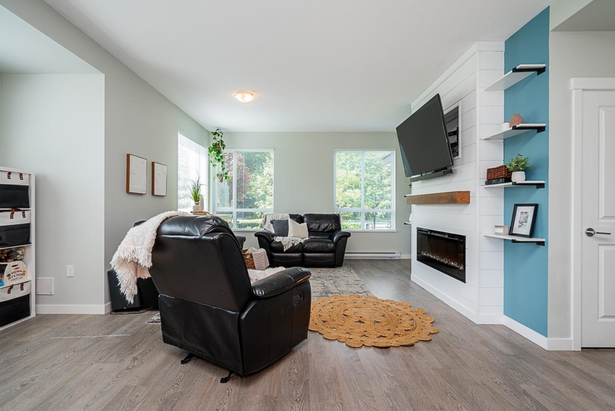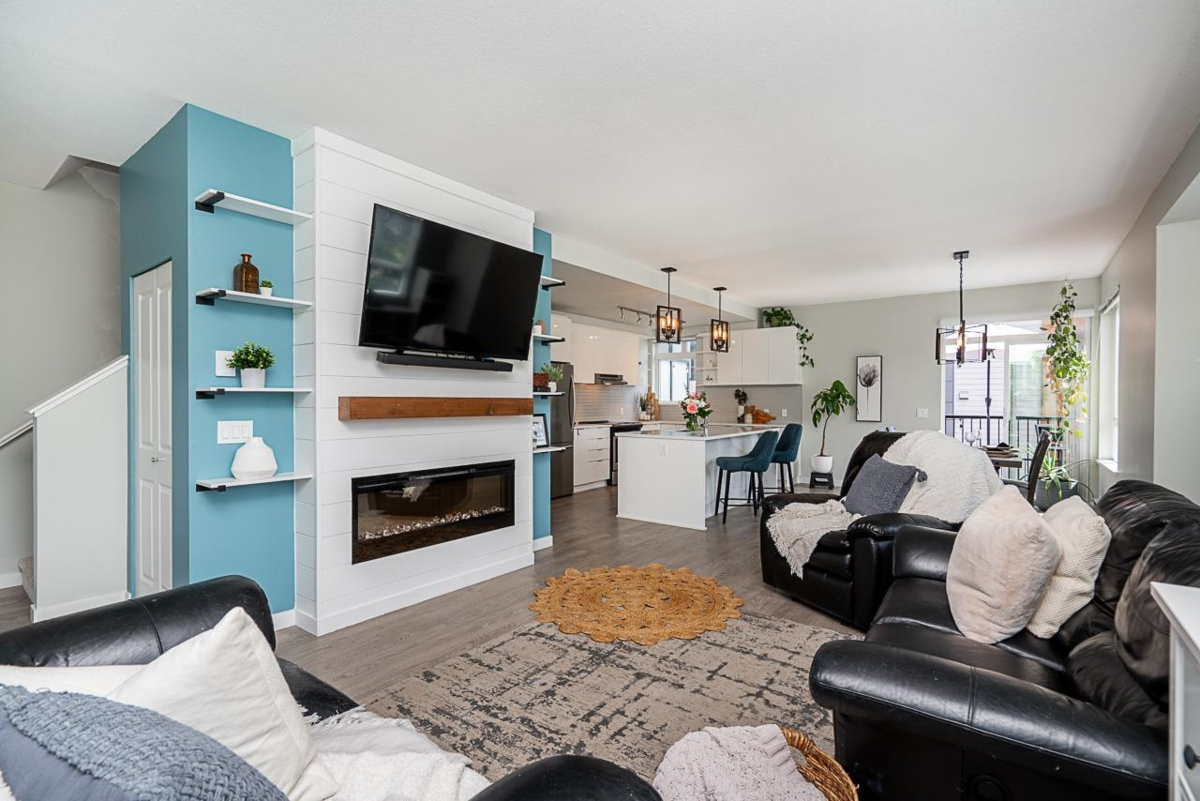 Step into your future home at Townsend! End unit 1,588sqft townhome thoughtfully designed featuring 3 bedrooms, 3 bathrooms and a versatile den. Freshly painted and full of natural light, boasting 9’ ceilings, an open concept layout and gourmet kitchen with large island perfect for gatherings. Enjoy the custom feature wall in the living room with TV mount, mantle and electric fireplace. Upstairs bedrooms including primary suite with oversized shower and 2 walk in closets. Smart heating in every room via the Mysa app. Double side-by-side garage, plenty of storage, sunny deck and fenced yard. Strata includes access to fantastic amenities: clubhouse, games room, media room and play area. Centrally located near schools, parks, transit, shopping, groceries, restaurants, eateries and more.