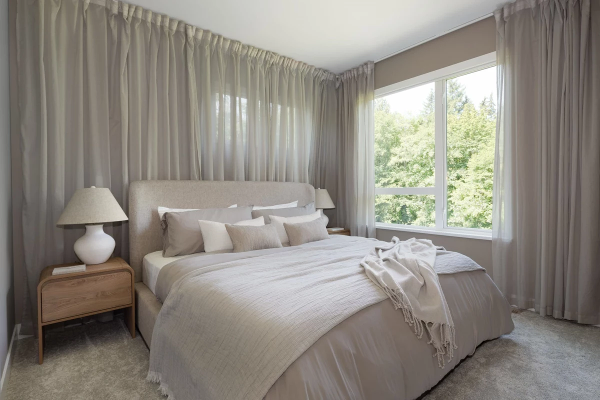 Welcome to NATURE HAUS by Isle of Mann. Tucked away in a serene leafy grove of Surrey's Fleetwood neighbourhood, this quiet enclave looks out on the towering Douglas firs of Godwin Farm Biodiversity Preserve Park. Big yards complement nature-inspired amenities. The 'B3' 4 Bed, 2.5 bath exec. home is complete with wide-plank laminate wood flooring, 9' ceilings on main, SS KitchenAid appliance package inc. gas range, large kitchen island, quartz countertops with full quartz backsplash and gas BBQ h/u on balcony. Primary bdrm with custom closet organizers in walk-in closet. Spa insp ensuite inc. a double vanity with undermount sinks, quartz countertops and frameless glass shower. Forced air heating with central AC included. MOVE-IN EARLY 2026.
