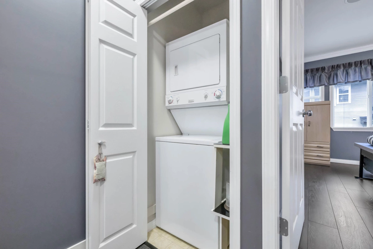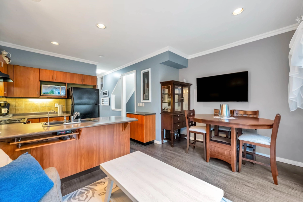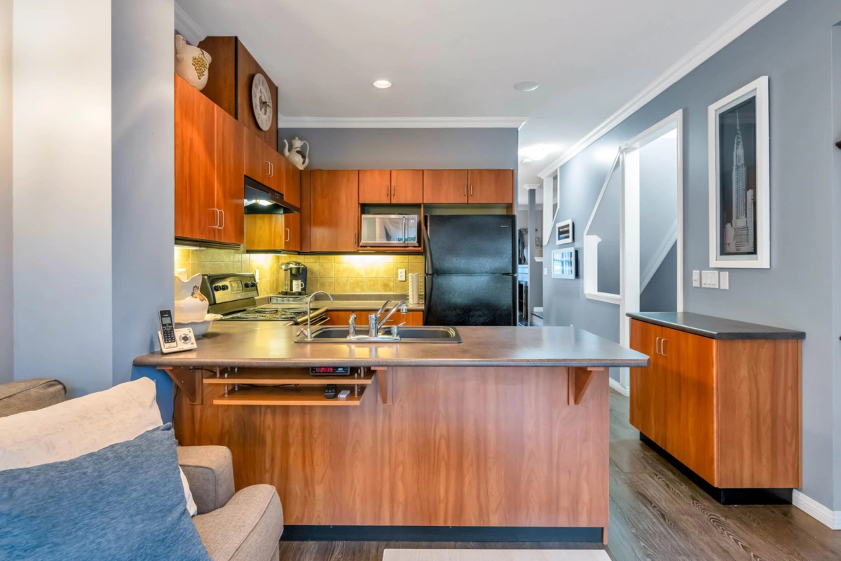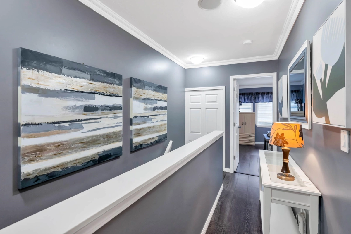 Boardwalk~ A quiet, family friendly complex offers this almost 1300 sq ft 2 bdrm, 3 bth in a great location! Tucked away, yet connected to everything~ schools, shopping, parks all right outside your door. Walkable to future skytrain! Quick freeway access for commuters. Pride of ownership is here! Well maintained, spotless & move in ready. Main flr has living rm with gas fireplace, well equipped kitchen opening to dining area, currently used as a family rm/eating space. Step out to the patio & fenced yard~ perfect for kids/pets! Up includes 2 well sized bdrms with primary suite offering a 3 pc ensuite & there is another 4 pc main bth! Massive double tandem garage w/ tons of storage & workshop at the back! New furnace, H/W/T & updated flooring. Amenities= Gym, floor hockey, clubhouse & more!