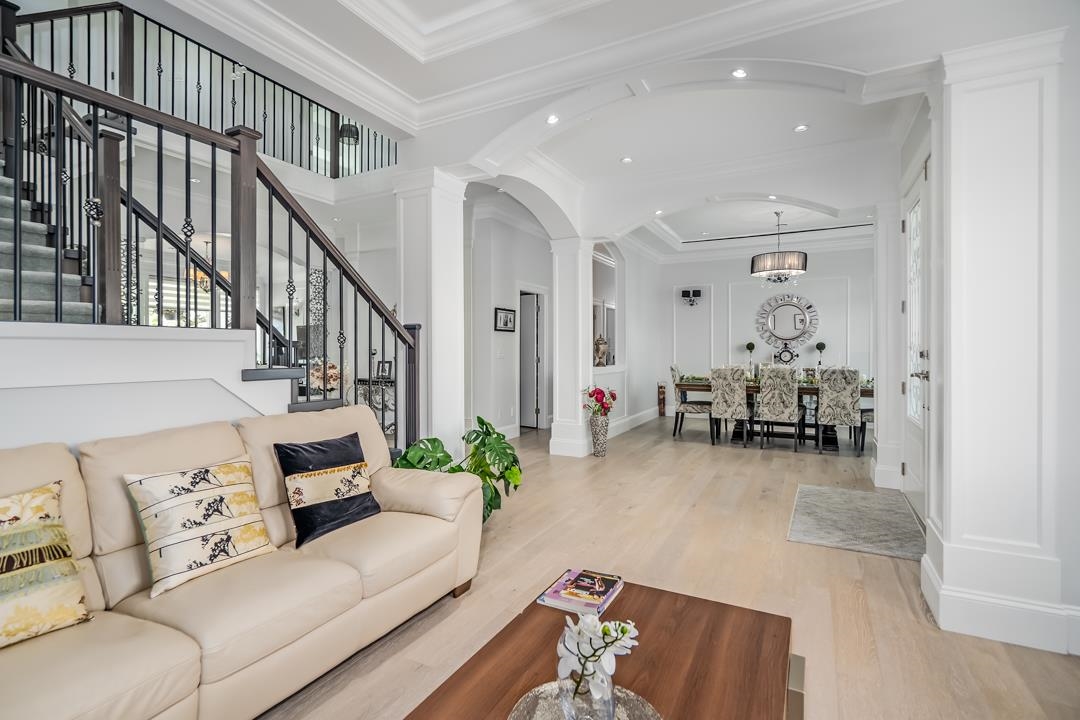 LIKE NEW - refined living in this custom-built home in prestigious Deer Lake Place. The spacious main floor features 10’ coffered ceilings, recessed lighting, and elegant designer touches. The gourmet kitchen includes Corian countertops, S/S appliances, custom cabinetry, and a spice kitchen with a large walk-in pantry. Enjoy multiple living areas, a media room, office and a guest bedroom with ensuite. Upstairs offers a cozy lounge and 4 large bedrooms, each with its own bathroom. The primary bedroom showcases stunning N. Shore mountain views. The fully finished lower level includes a rec room and 2-BDR mortgage helper with separate entry and laundry. South-facing yard with covered deck, garden and gazebo. Walk to top schools, parks and Deer Lake. Call to view. OPEN SUN SEPT 21ST 2-4PM