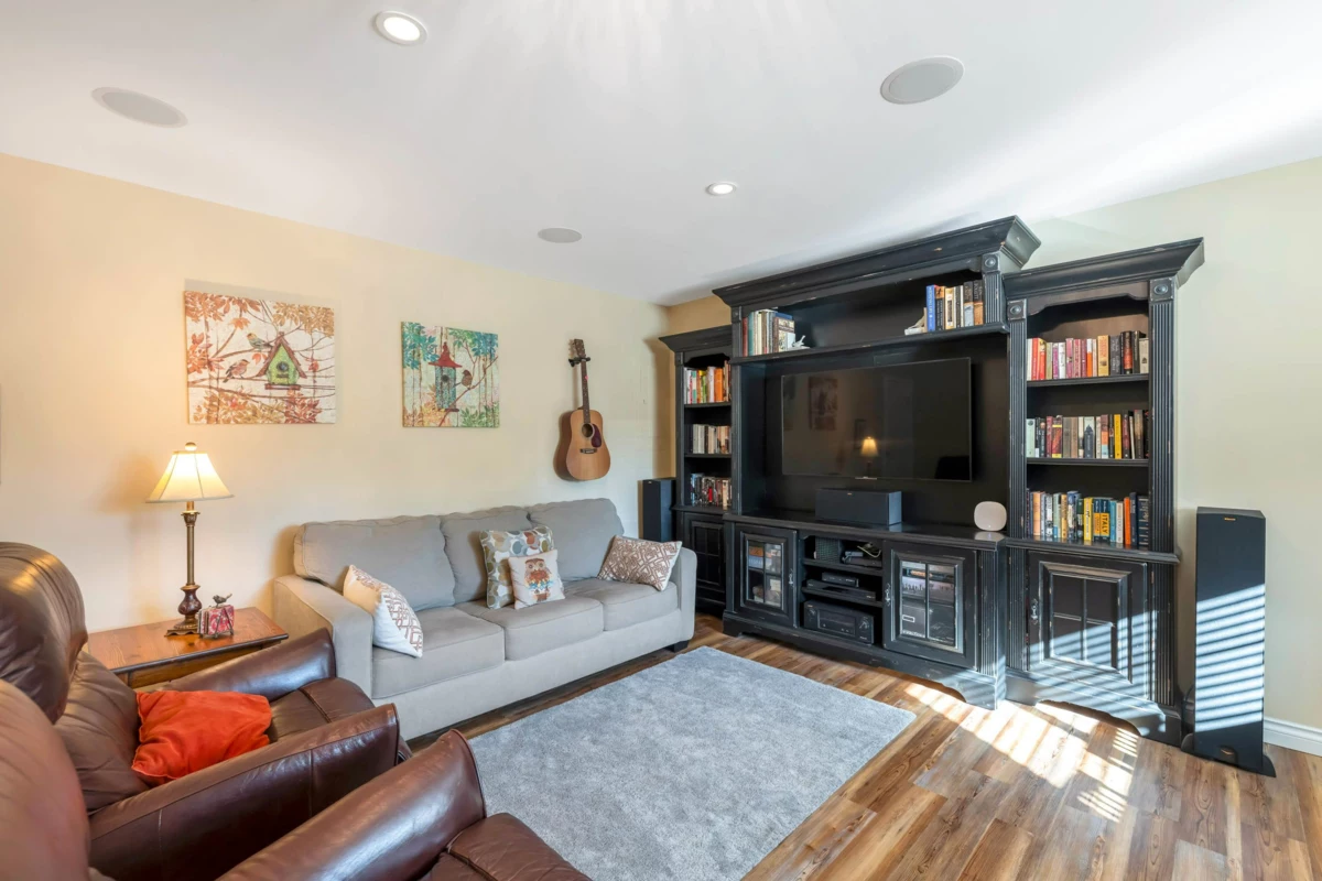 Popular Marina Gardens! This is a fantastic 3/4 bedroom home with 2.5 baths in meticulous condition. Situated on a private West facing cul de sac lot with a private and maturely landscaped yard backing onto greenery. A perfect family home with spacious main floor offering formal living and dining spaces and a great room concept kitchen and family room combo with double French doors leading out to an entertainment sized patio space. The garage has been converted to a wonderful family escape flex space for theatre room or for the young adults making this home the hub for socializing. Quiet location and steps to Neilson Grove School, trails, marina and golf course!