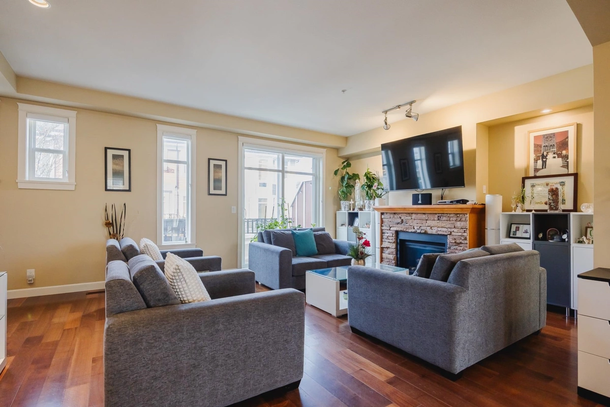 Welcome to Popular Yorkson, quality built luxury 2,000+sqft. townhouse! Upstairs 3 large bdrm & laundry rm. Master bedroom w/walk-in closet, central air conditioning, heated ensuite floor & anti fog mirror & oversized walk-in closet. Spacious main floor incl. fantastic kitchen w/huge walk-in pantry, living rm w/cozy fireplace, dining, family rm. High end finishes incl hardwood flooring, solid-core wood doors, soft close cabinets, SS appliances, granite counters, 9' ceilings. Huge bonus room on ground floor w/separate entrance, full bath and easily convertible to 4th bedroom. High efficiency furnace & on demand hot water system. Steps to Yorkson Creek Middle School, athletic park and dog park. 2 min drive to HWY1 and Carvolth Rapid-bus. Parking for 4 cars!!!