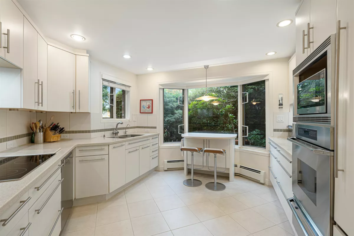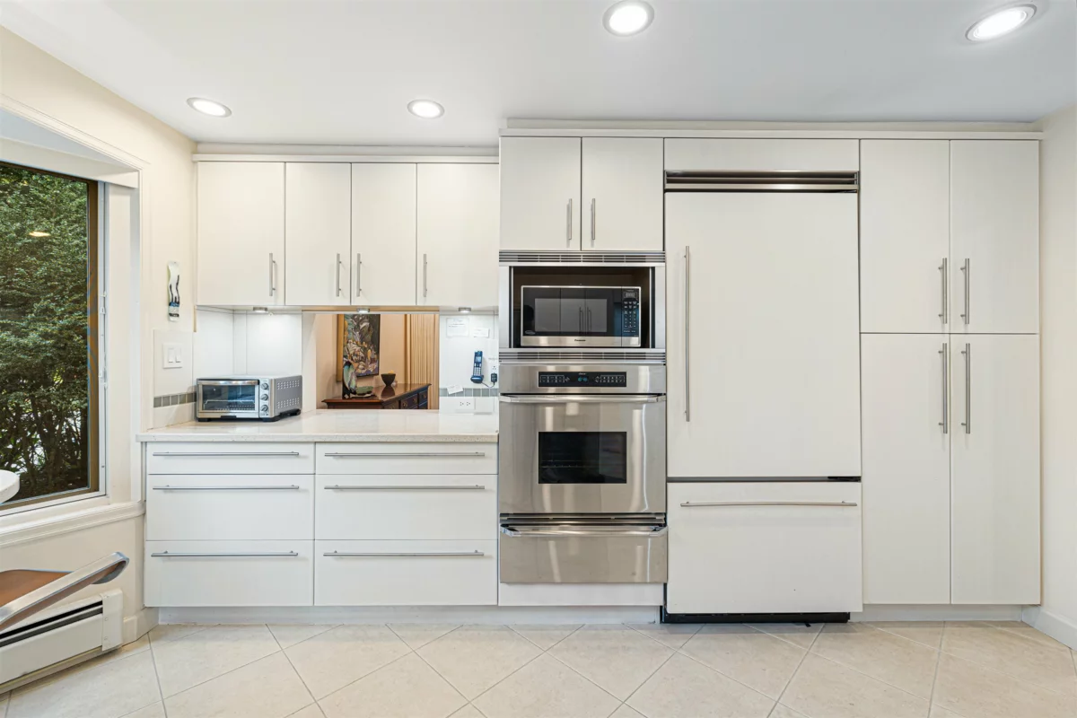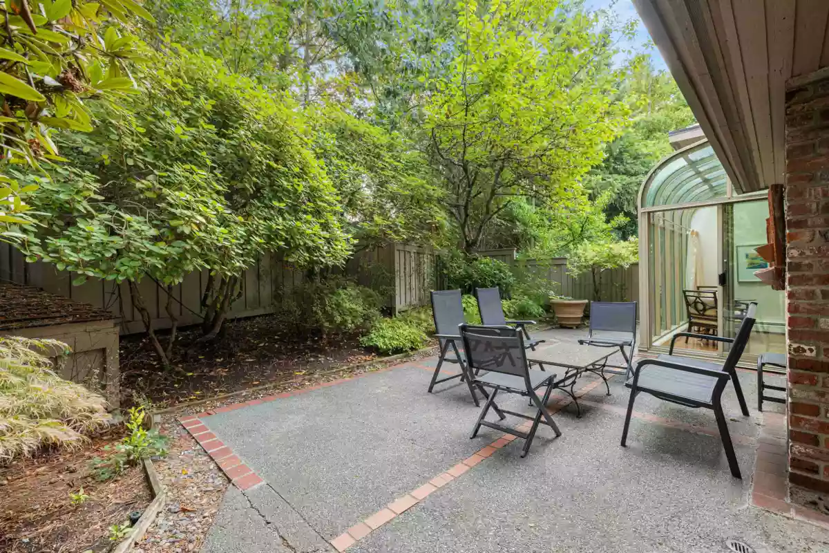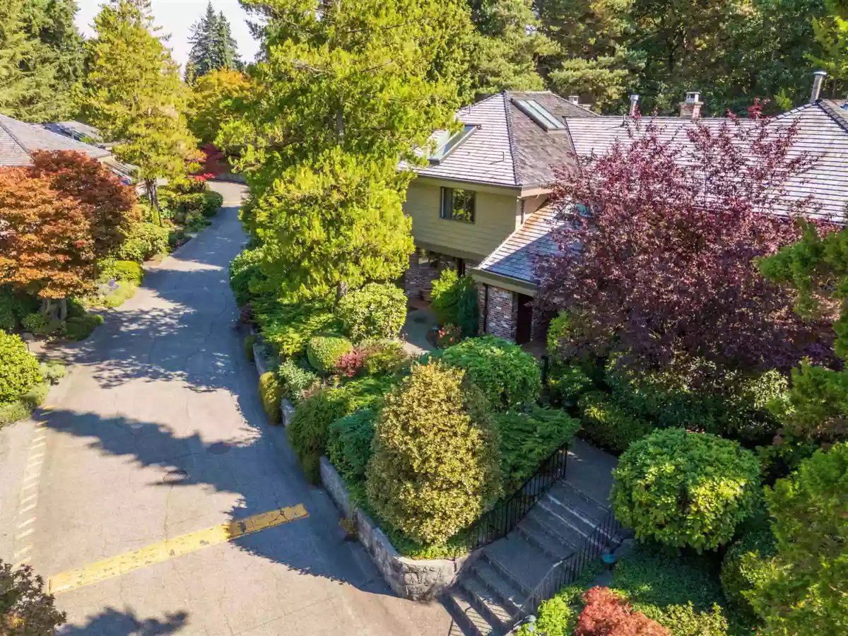 Set within the exclusive gated community of Shaughnessy Place II, this beautifully updated three-bedroom, two-and-a-half-bath corner residence offers exceptional privacy, backing directly onto VanDusen Gardens—one of the quietest homes in the complex. A grand spiral staircase and glass elevator connect the main levels, while a light-filled solarium with curved floor-to-ceiling glass opens seamlessly to the private garden. The kitchen features high-end built-in appliances, and expansive windows flood the home with natural light. Upstairs, the primary suite includes a private den, terrace, air conditioning, and a spacious spa-inspired bathroom with skylight. Completing the home is a private two-car garage with direct interior access, plus a brand-new furnace and instant hot water system.