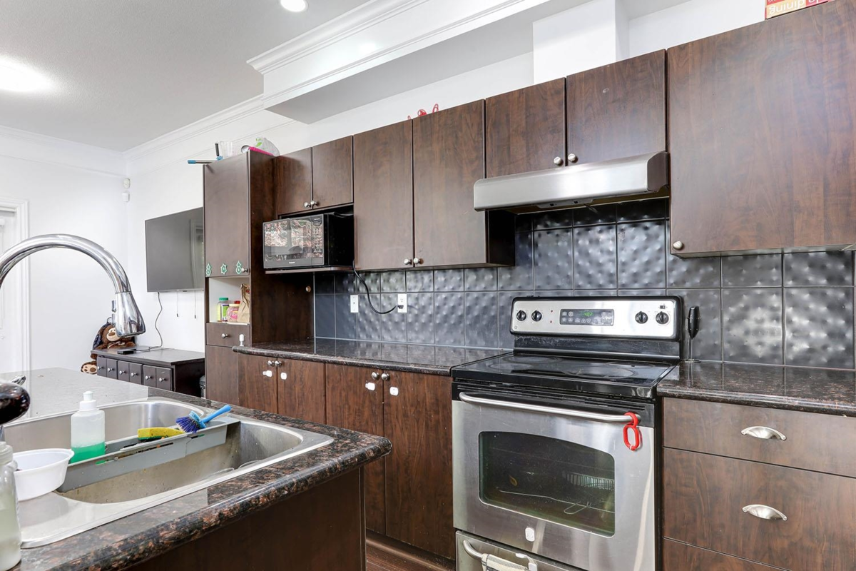 Welcome to CORNER unit with BEST location in sought after GREYHAWK. This beautiful 3 level, 3 bed, 3 bath, 2,000sq ft with rec room unit offers tons of privacy with back yard right next to open green space. Tons of upgrades; including extra cabinetry, spacious kitchen with GRANITE countertops, wood floors, S/S appliances, built in vacuum, modern light fixtures throughout the unit, new vinyl flooring in all bathrooms and entrance, gorgeous crown molding on main floor and updated washer with ductless dryer. Upstairs features 3 generous size bedrooms, 2 full washrooms, private master with a walk-in closet. Unit offer 2 car Side by Side DOUBLE CAR GARAGE. Short walking distance to Superstore, shopping, bus stop and much more