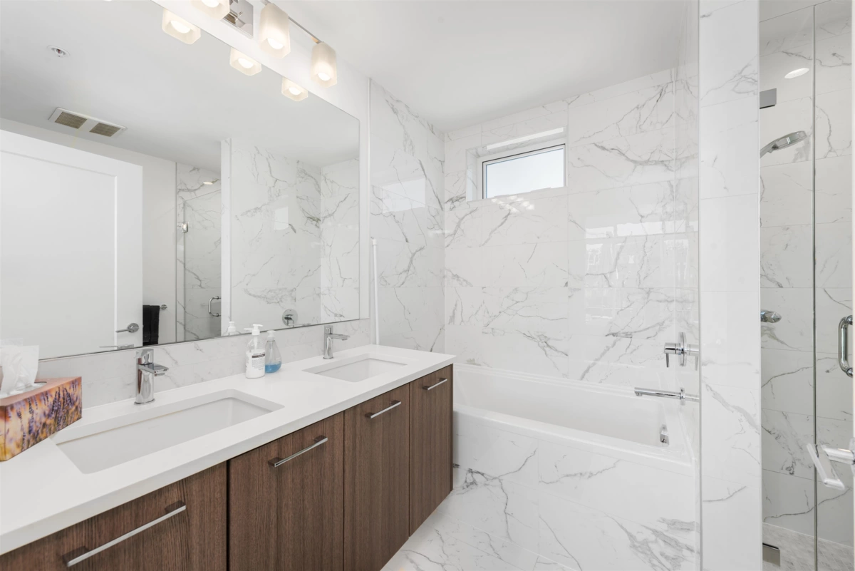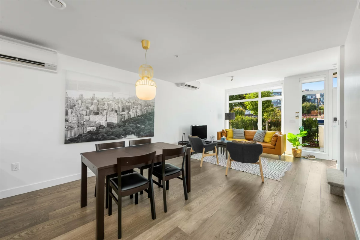 Discover upscale living in this stunning three-level townhome, crafted for impeccable quality. Enjoy the convenience of direct access to a gated underground parking, complete with a private storage room. The home boasts 9-foot high ceilings. The master bedroom, facing South, opens up to a spacious 15' x 11' balcony. Featuring wide plank engineered hardwood floors and a state-of-the-art, zoned thermostat-controlled heating and air conditioning system. The Euro design open-concept kitchen is equipped with a gas stove. Peace of mind comes with a 2-5-10 new home warranty. Just a few blocks from QE Park, and within walking distance to Nat Bailey Stadium, Hillcrest Center, Cambie Village, and SkyTrain, this townhome is truly the ideal dream home. Open House Sunday 1st Feb 2-4 pm.