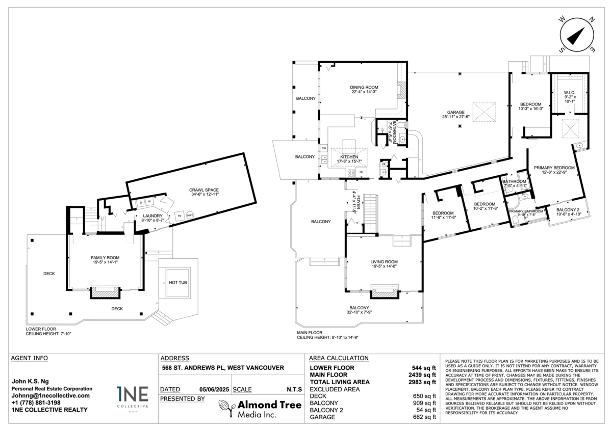 Nestled in the tranquil Glenmore of West Vancouver, this home offers over 2,900 sqft of thoughtfully designed living space. Located at the end of a peaceful cul-de-sac, it provides unparalleled privacy and serenity. Featuring a grand entrance foyer, an open-concept kitchen and dining room with ceiling fan, and a formal living room that opens onto a large deck. The main floor is wrapped with multiple balconies and ample natural light through multiple skylights. Additional amenities: 2 covered parking spaces, an outdoor hot tub, and a spacious crawl space offering abundant storage. School Catchment: Westcot Elementary, Sentinel Secondary, West Vancouver Secondary (all within 7-min drive)