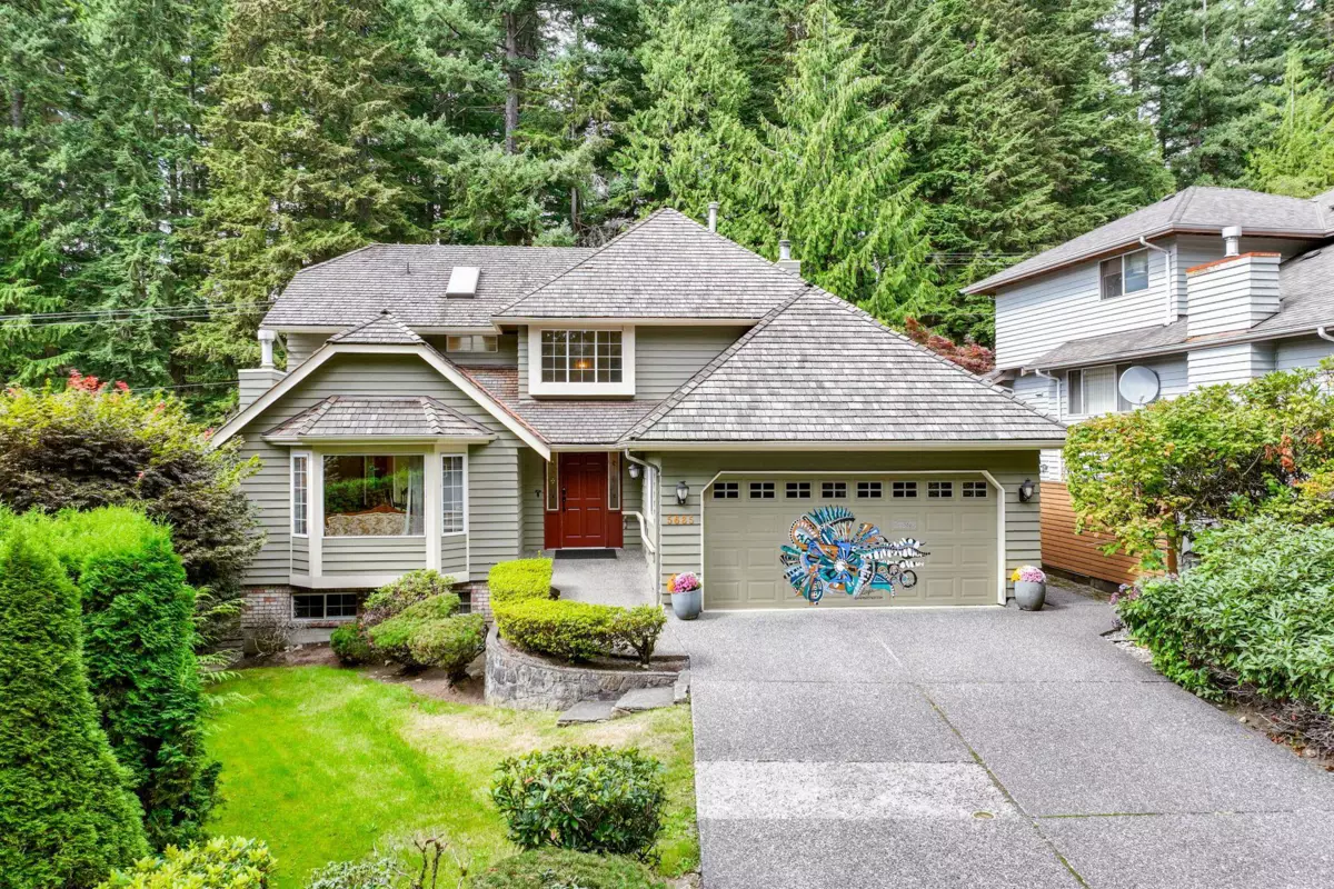 Spacious 4-bed, 4-bath Grouse Woods home with over 4,200 sq/ft across three levels, including a large basement with suite potential. A grand foyer with soaring ceilings and curved staircase opens to bright, generous rooms. The living room features a bay window and gas fireplace, while the dining room suits family gatherings. At the back, an open kitchen with oak cabinets, stone counters, stainless appliances, and large island flows to an eating area and family room with access to a private west-facing deck. Upstairs: 4 bedrooms, including a primary with walk-in closet and 5-piece ensuite. The lower level offers a rec room, wet bar, bath, and flex areas with separate entrances. Walk to Grouse Mountain, Grouse Grind, and trails. In Montroyal Elementary and Handsworth Secondary catchments.