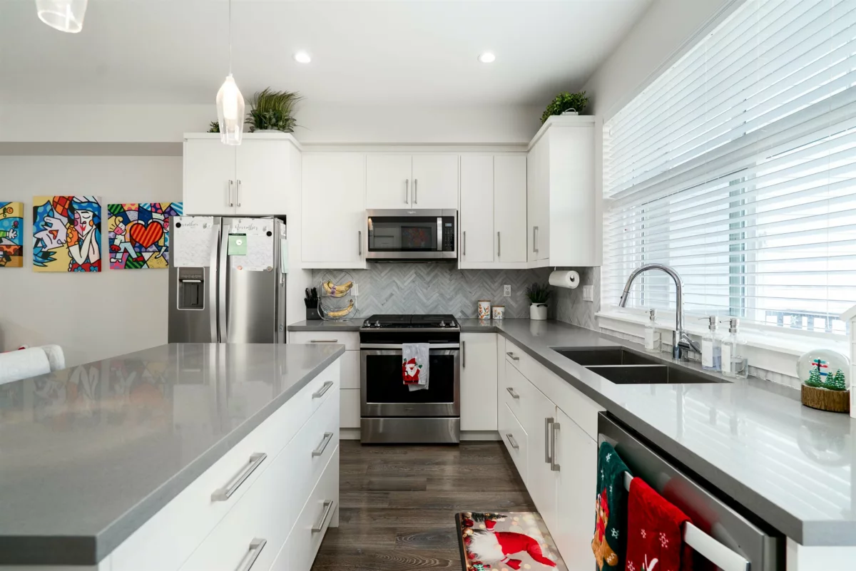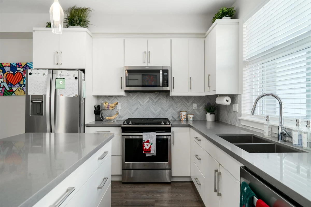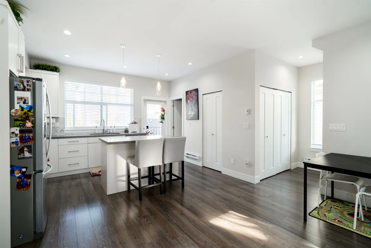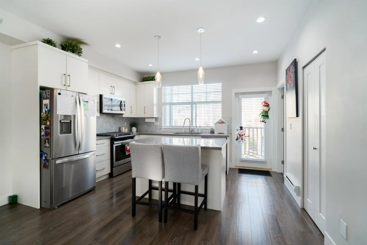 A tranquil neighbourhood of beautiful homes tucked along the Nicomekl River in South Surrey. This bright and airy corner townhome is the one you’ve been waiting for! Offering 3 spacious bedrooms + rec room, 2.5 baths, and a double side-by-side garage, this home is designed for comfortable family living. Enjoy a fenced front yard with front patio plus a balcony off the kitchen – perfect for a private BBQ or morning coffee. The primary bedroom features vaulted ceilings and a double-sink vanity, while the other two bedrooms offer functional layouts with no wasted space. Nestled just steps from nature, this home sits adjacent to the future Nicomekl riverfront and is surrounded by scenic walking trails. All this, while being conveniently close to commuter routes, schools, and local amenities.