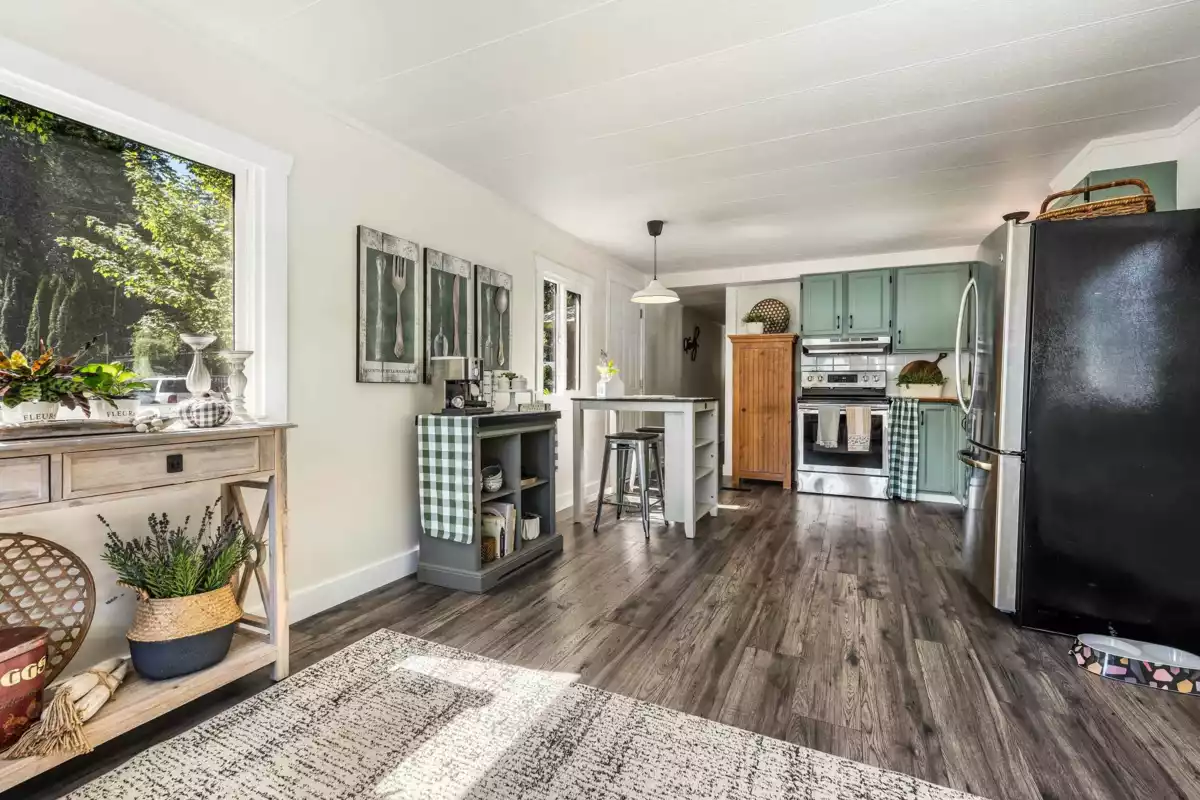 Surrounded by stunning mountain views, this fully renovated 2-bedroom, 1-bath home in Crystal River Court offers nearly 800 sq. ft. of bright, open living. Recent updates include a new roof, siding, flooring, and modern finishes throughout, giving you peace of mind and a move-in ready home. Enjoy the outdoors on your spacious wood deck, perfect for soaking in the serene surroundings. Country-cozy charm meets convenience in this well-managed, pet-friendly (sorry, no rentals) community that shows pride of ownership. Whether you love fishing or swimming at the lake, exploring scenic hiking trails, or spending a day on the golf course, this central location has it all for daily living and leisure.