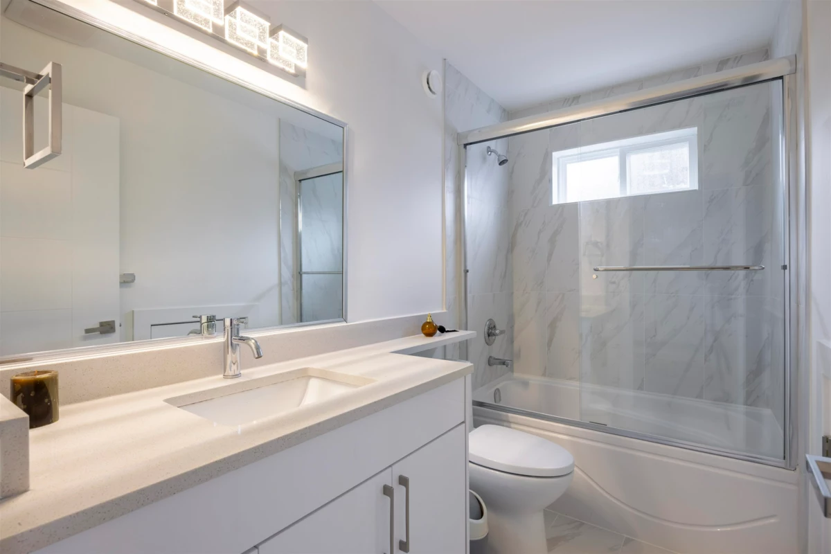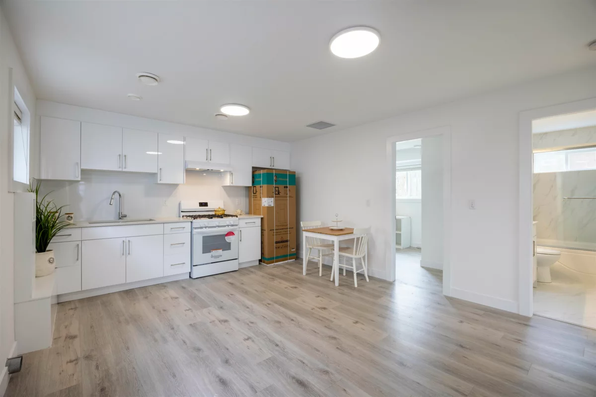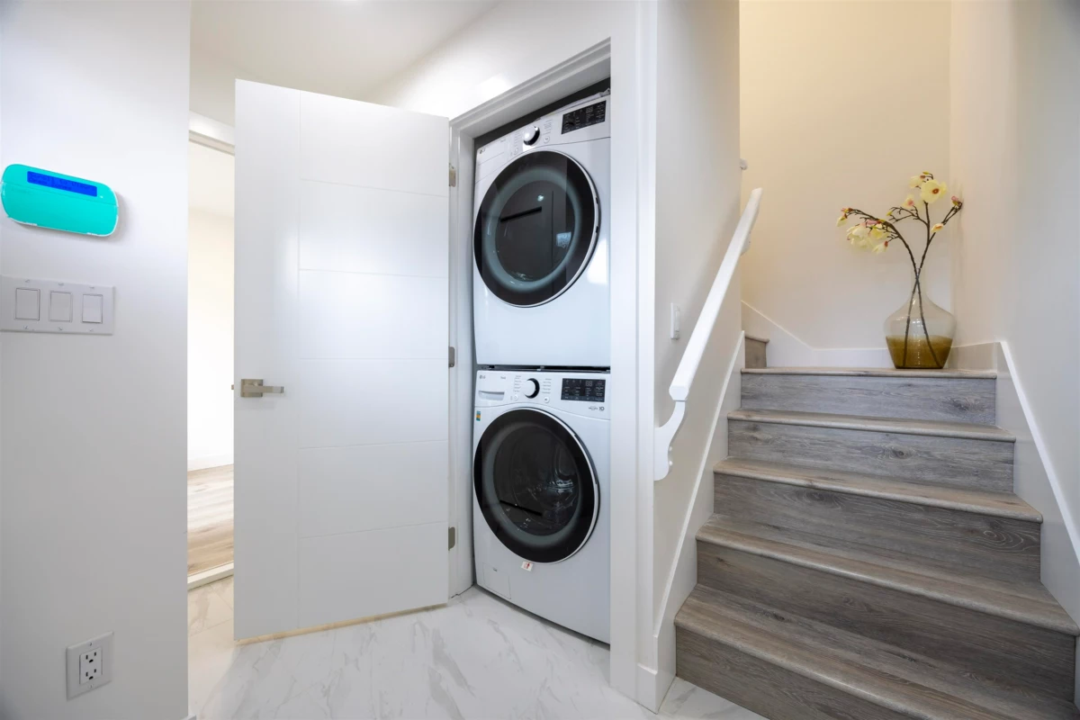 Nestled in the heart of Burnaby North, this stunning home offers a perfect blend of modern elegance and practical living. This beautifully designed 2-storey back unit duplex spans 1,402 square feet and features two kitchens, a single-car garage, and a private backyard. The lower level includes three bedrooms and 1.5 baths, making it an ideal space for generating rental income. The home boasts sleek finishes, including elegant pendant crystal lighting, laminate flooring, and heating throughout. Enjoy breathtaking views of the North Shore Mountains and unwind in the low-maintenance, gravel-landscaped backyard. Located in a welcoming and convenient neighborhood with top-rated schools, this property is just 5 minutes from BCIT and the Skytrain. Don’t miss the opportunity, book showing today!!!