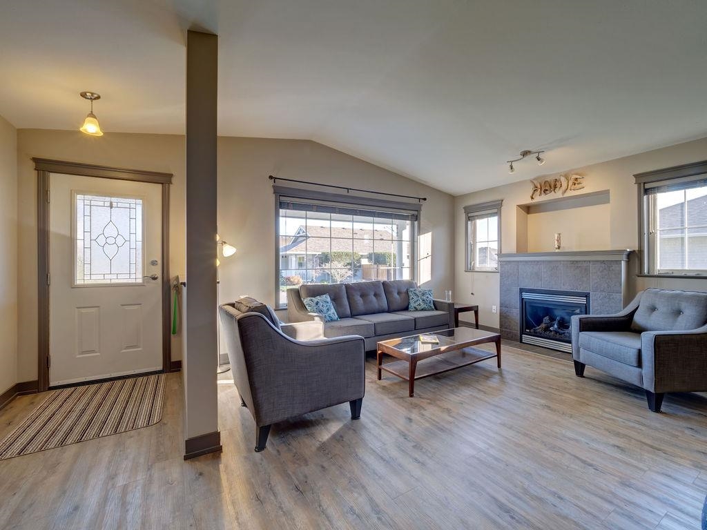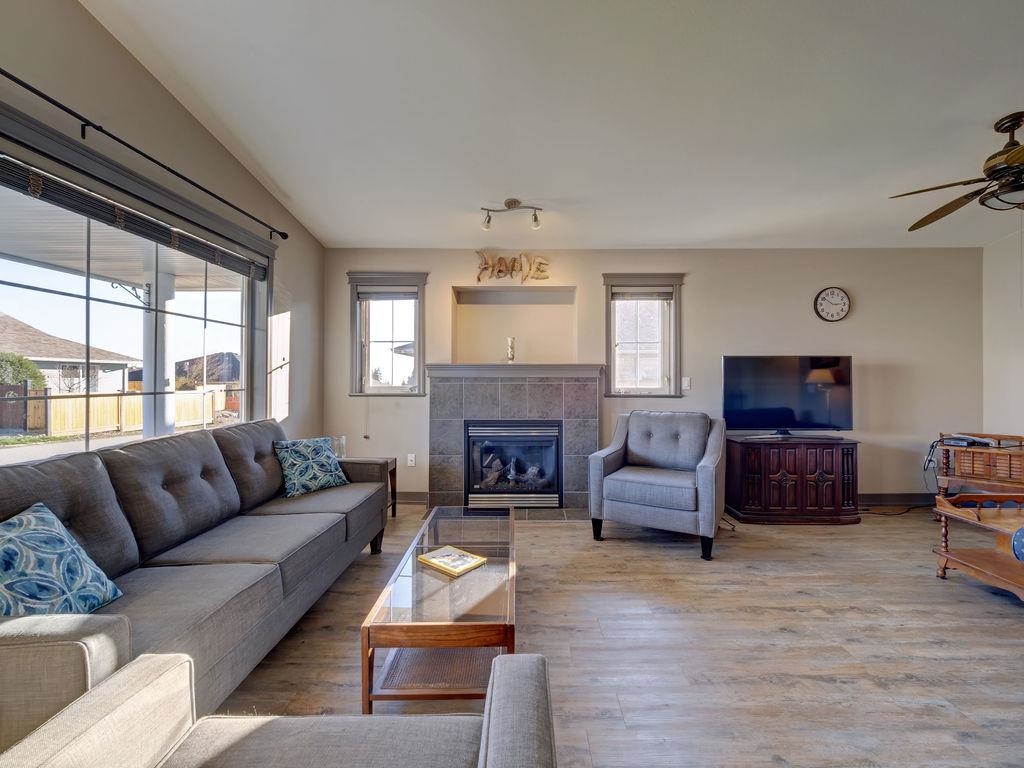 Exceptional value in this three bedroom rancher located in the popular Tyler Heights neighborhood. Sunny West facing backyard is fully fenced. Hardwood flooring throughout and cozy gas fireplace in the living room. Dining room can easily be switched into the great room to allow for a nice sitting area off the kitchen and patio. Roof replaced in 2018. Extra parking allows for 3 cars in the driveway plus double garage. This is a safe and easy walking community close to the bus stop, trails and in the highly sought after West Sechelt Elementary School catchment area.