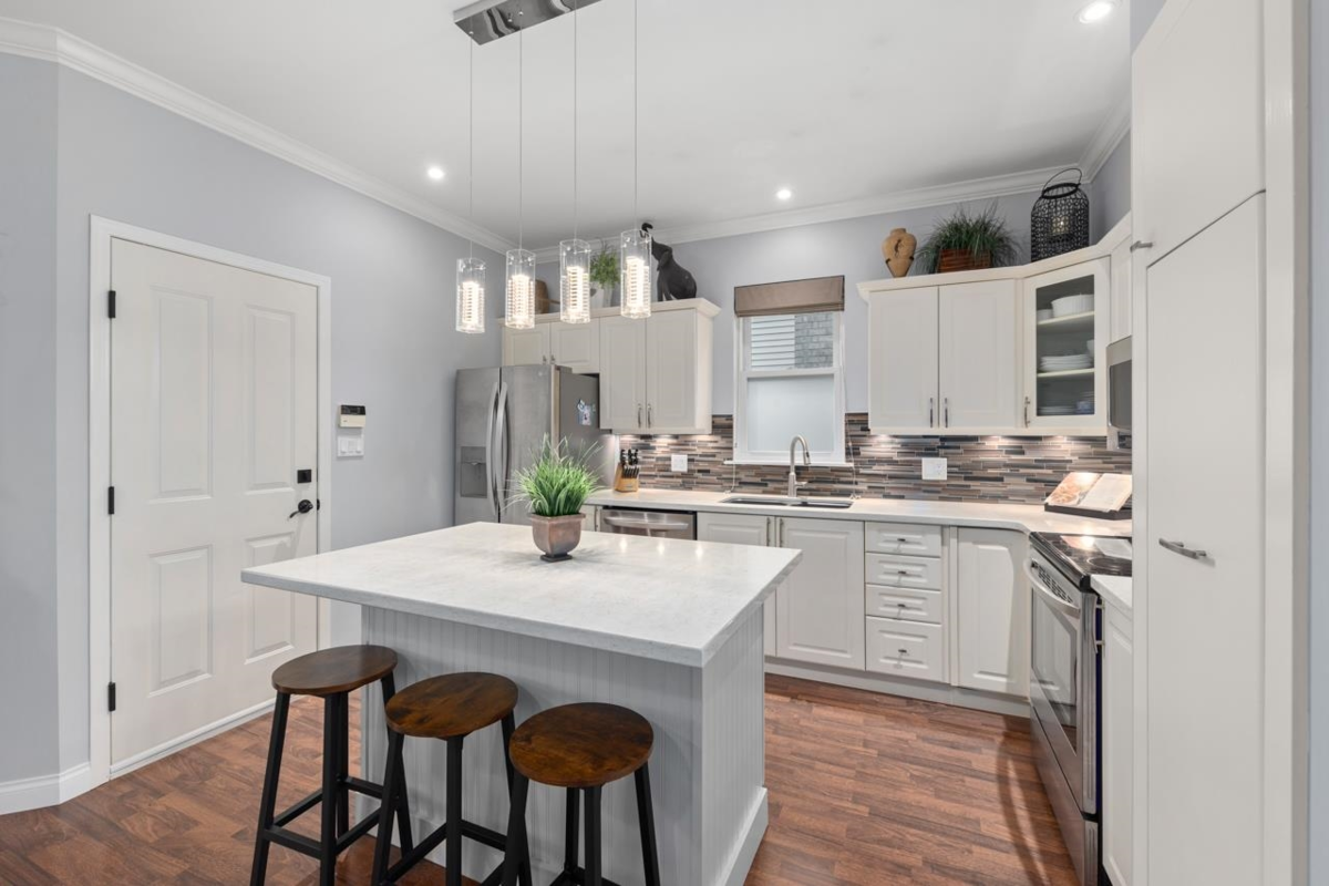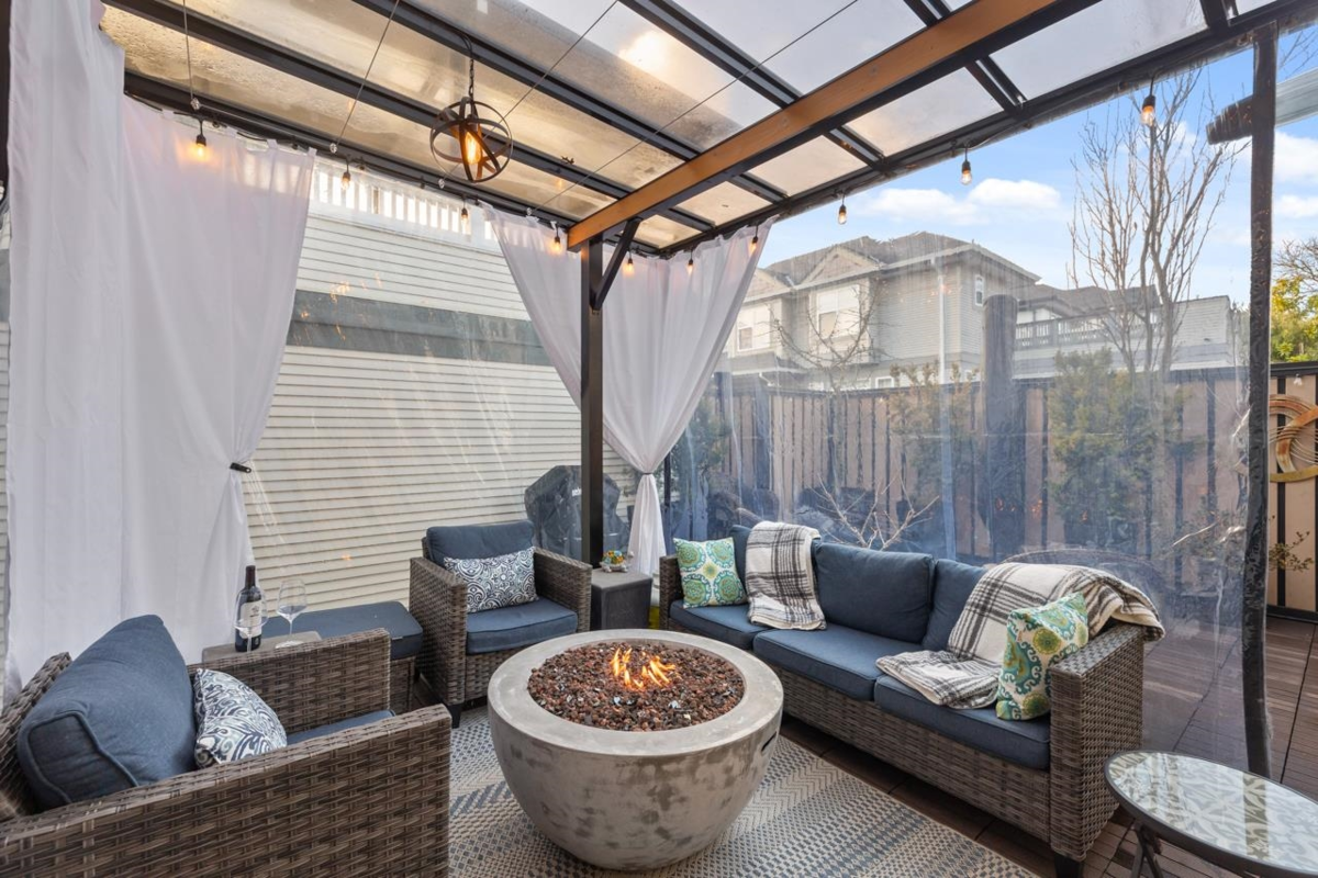 Welcome to this elegant and thoughtfully upgraded home in a prime Surrey location, overlooking a park and playground. This bright three-level home offers a beautiful flow with stylish living spaces and a fully finished basement with a bedroom and custom wine cellar. The kitchen is the heart of the home, featuring a large island, modern lighting, and quality finishes ideal for everyday living and entertaining. Step outside to a private outdoor oasis with a covered patio, glass roof, cozy seating areas, and soft lighting for year-round enjoyment. The insulated and finished garage includes built-in storage cabinets for easy organization. With smart home upgrades, refined details, and inviting indoor and outdoor spaces, this home offers comfort, style, and everyday luxury.