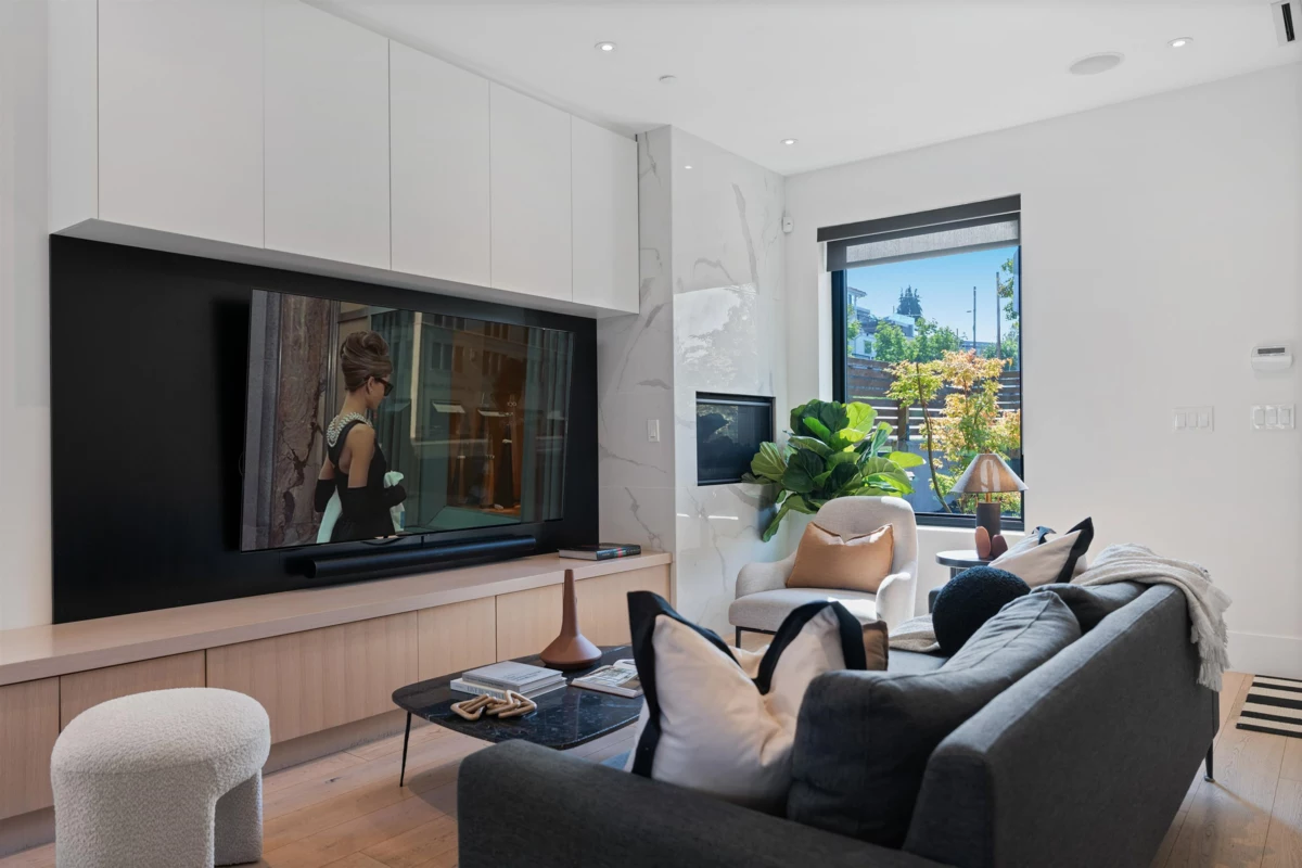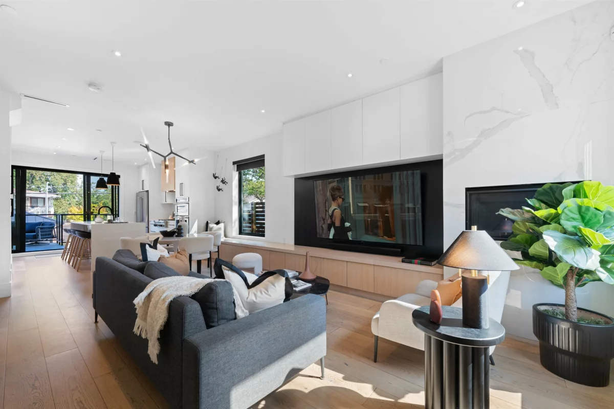 Experience elevated living in this 4 bed, 4 bath detached home, where Scandinavian-inspired design meets modern comfort. Custom millwork, rift-cut white oak cabinetry, & smart built-ins showcase true craftsmanship, while thoughtful storage maximizes every space. The main floor features a gourmet kitchen & seamless family room, perfect for everyday living and entertaining. Upstairs offers 3 bedrooms, including a spacious primary with walk-in closet, spa-like ensuite, and private balcony. The lower level boasts a versatile media/rec room plus a legal suite with its own entrance-an ideal mortgage helper. Outdoors, enjoy a sunny deck, hot tub, & heated garage. Located between Main & Fraser, steps to Tupper High, Livingston Elementary, cafes, shops, and transit
