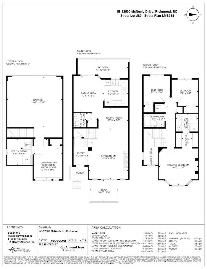 Conveniently located in Polygon's gated "Francisco Village" near Cambie & No.5 Rd, this townhouse offers 1,398 sq ft on Main & Up per strata plan, plus 198 sq ft finished Lower Floor (unpermitted 4th BR/Media/Office). Floor Plan updated Dec 5, 2025. Substantial renovations include new kitchen appliances, countertops, sink, faucet, bathroom vanities, toilets, shower stall, bathtub, lighting fixtures, hot water tank & fresh paint. Built-in features: in-suite laundry & side-by-side garage. Strata amenities: pool & gym. Within walking distance to King George/Cambie Community Park, Kathleen McNeely Elementary, H.J. Cambie Secondary, transit & Cambie Plaza. Easy access to Oak St Bridge, Knight St Bridge & Hwy 91. Measurements approx; buyers to verify. Open House: Sunday, Jan 4, 2026, 2 - 4 P.M.