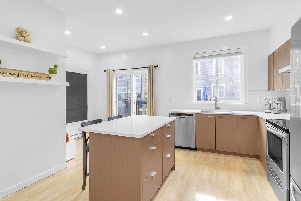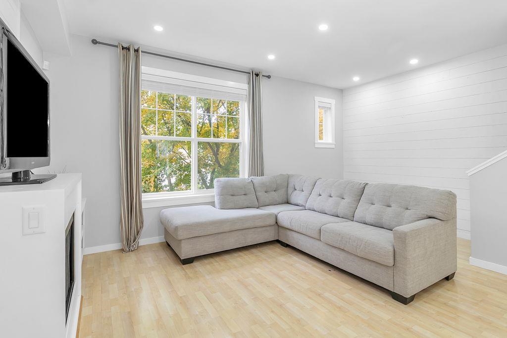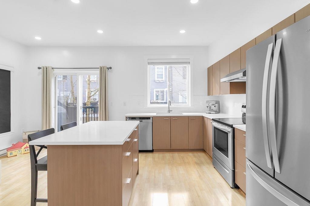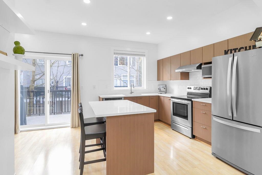 Rare gem available! Nature's Walk by award-winning mosaic. Discover a perfect place for family living in this English colonial style townhome with picturesque setting nestled amidst lush greenery and mature trees. Featuring 9 ft ceilings, 4 bed, 3 bath, with tasteful upgrades throughout. Huge sundeck on the main floor to entertain your guests. 3 spacious bedrooms upstairs, plus a bonus 4th bedroom/office or playroom below leading to a private manicured front yard facing gorgeous green space. Complimented by a side by side garage with additional parking for 2 more cars. Enjoy the peaceful ambiance of nature right outside your doorstep while still being conveniently located near shopping, Fresh Street Market, transit, parks and more! Just steps from Cambridge Elem. Open House Sun.Feb.8 1/3pm