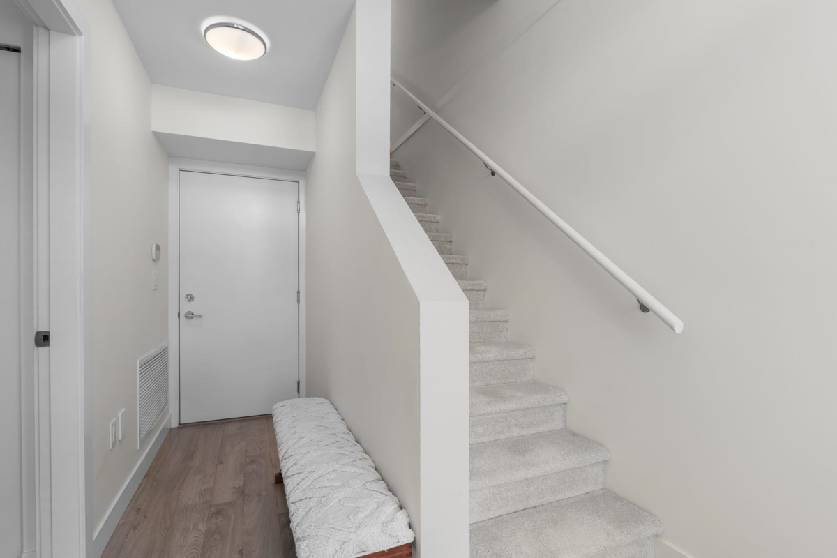 Welcome to Keystone in Willoughby! This beautiful END unit boasts 4 beds and 4 baths in a spacious townhouse with over 1,600 sq ft of living space.Features include an open layout, a modern kitchen with stainless steel appliances, gas cooking, a gas BBQ hook-up, an island with seating, AC, tankless hot water on demand, an alarm system, rough-in for built-in vacuum, & a double garage. Upstairs, you'll find a large primary bedroom with an ensuite and walk-in closet, plus two additional bedrooms. Downstairs offers an extra bedroom with a full bathroom, perfect for guests, a nanny, or in-laws. The property also includes two playgrounds, a community garden, & guest parking outside. It's conveniently close to shopping, transit, restaurants, recreation, parks, trails, Willowbrook Mall & much more!