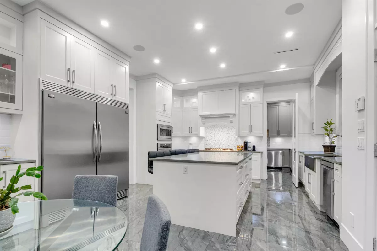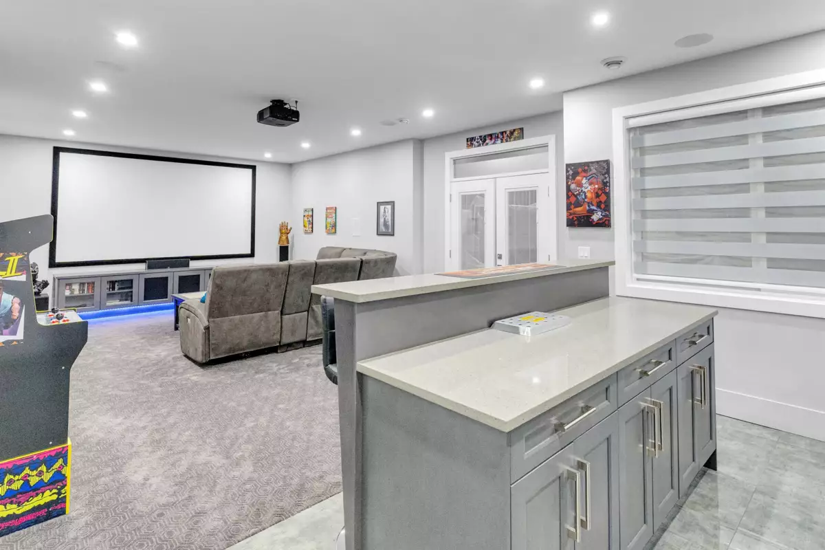 Stunning custom-built home in sought-after Sullivan Station, offering luxury and smart design throughout. Features hardwood flooring, in-floor radiant heating with multiple zones, HRV system, central vacuum, and a Viessmann on-demand boiler with smart hot water recirculation. Gourmet main kitchen with upgraded spice kitchen, high-CFM ventilation, and high-BTU gas cooktop. Enjoy built-in speakers, surround sound, smart lighting, triple-glazed windows, and gas fireplaces in the family room and covered deck. Main floor offers a junior primary bedroom and den; upstairs includes spacious bedrooms with upscale finishes. Heated garage with EV charging, sink, and finished flooring. Includes a legal suite and home theatre with wet bar. Walk to schools, shopping, YMCA, parks, and transit.