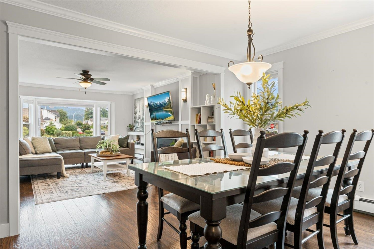 Beautiful 3-bdrm, 4-bth family home, situated on a generous corner lot in the heart of Sardis. Inside, you’ll find a smart & versatile layout. The primary bedroom on the main floor provides convenient, single-level living w/ full ensuite & walk through closet. Upstairs, discover two oversized bedrooms w/ plenty of space for kids or guests, along w/ a full bathroom. The lower level is designed with family fun in mind, featuring a large games room perfect for movie nights or entertaining, PLUS a dedicated kids' playroom. Step outside & enjoy your own covered outdoor hockey area, fully fenced yard & DETACHED SHOP!! Lots of room for multiple vehicles, an RV or even a boat!! Located in a quiet, family-friendly neighborhood, close to schools, parks & the Vedder River, this home truly has it all!
