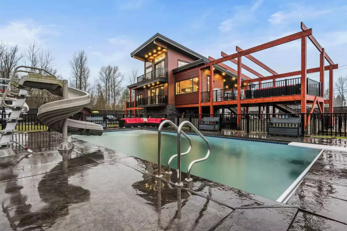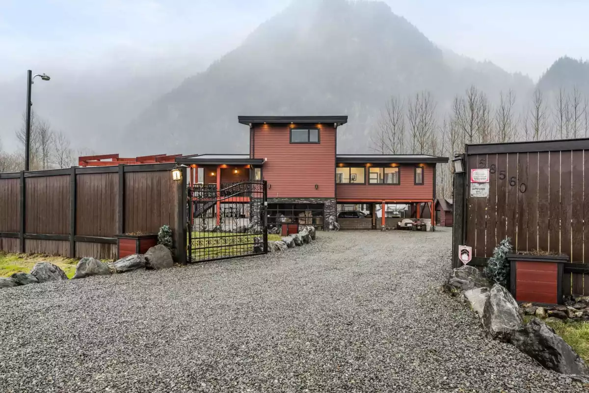 Custom EXECUTIVE home that backs onto 40 acres of farmland- only 25 minutes east of Chilliwack. Built in 2018, this place has it all, including a dedicated MASTER FLOORPLAN upstairs and two large bedrooms on the main. BIG WINDOWS with mountain views. The OUTDOOR POOL w/ stamped concrete all around includes an auto cover, and geothermal/gas/electric heating options. Large CEDAR TIMBERS accent the exterior build. 4 RV pads with their own power/water/septic. EV charging station. HOT TUB. Huge deck off the main, OUTDOOR WETBAR with tons of patio space for entertaining! Gated driveway w/HIGH FENCING, perimeter lighting that activates in the evening. There is also a 6000 watt SOLAR PANEL that feeds into the grid! No expense was spared! Lots of room to build your dream WORKSHOP.