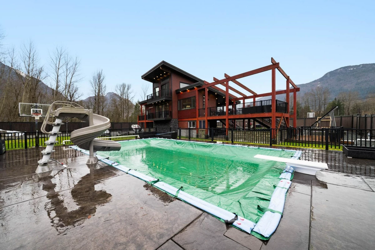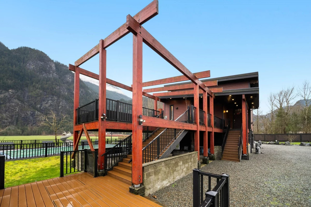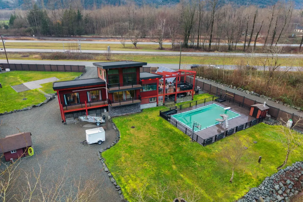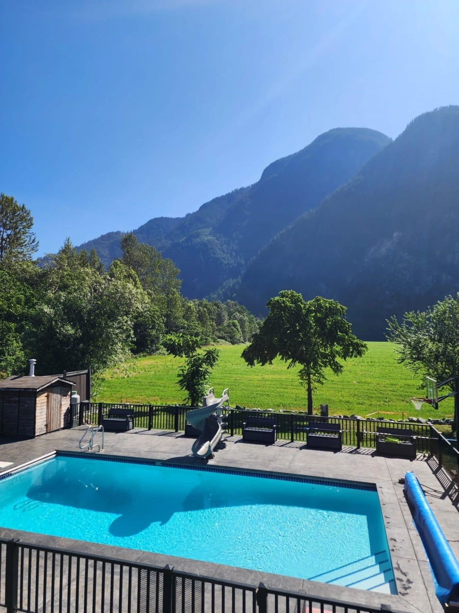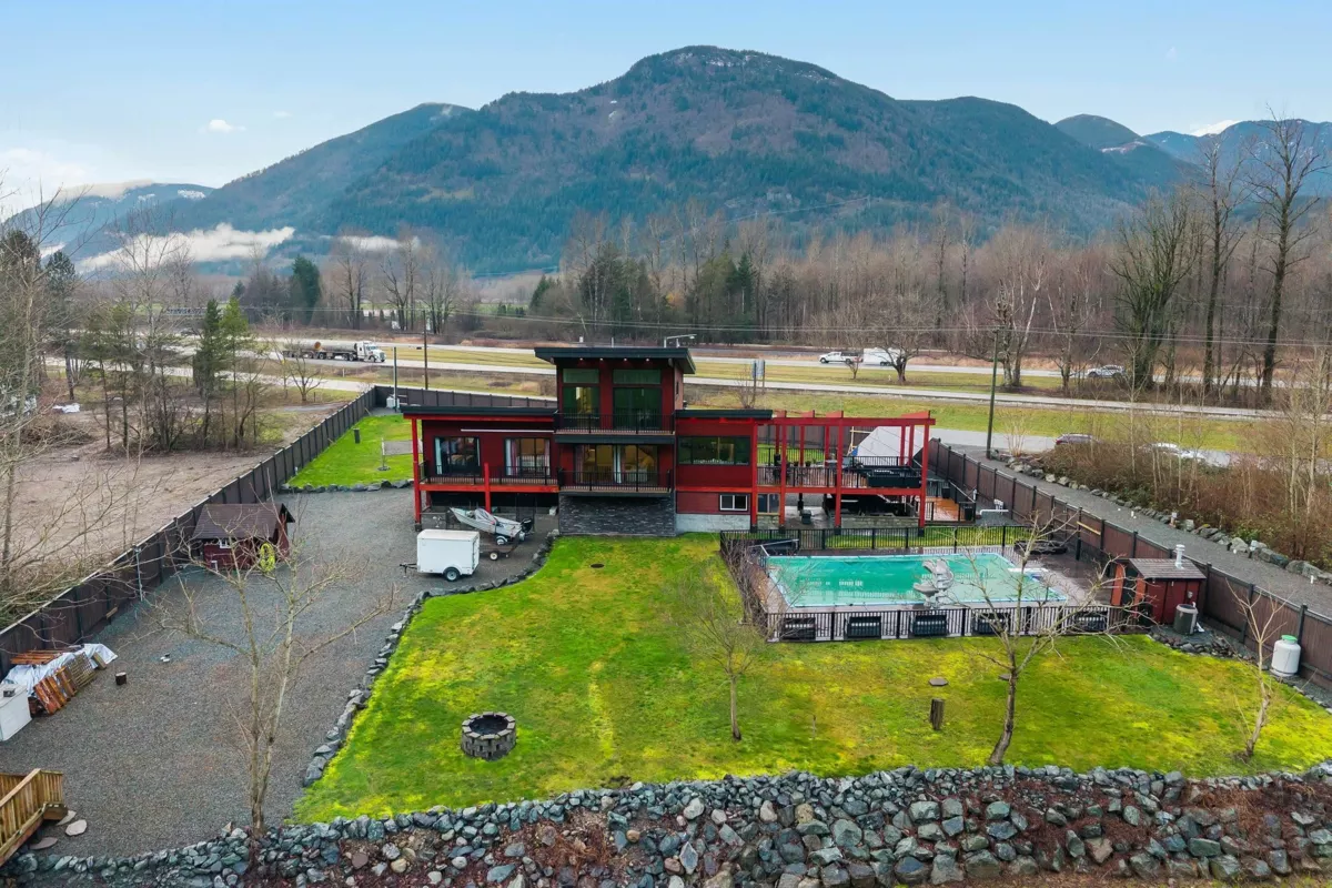 Welcome to your private oasis in scenic Hope! This custom-built 3-bedroom, 2-bathroom home is an entertainer’s delight. The open-concept living room and kitchen are crowned with soaring high ceilings and expansive windows, flooding the home with natural light. The main level features two bedrooms while the private upper floor is dedicated to a spacious primary suite—your own peaceful retreat. Step outside to a massive deck and three additional balconies, all with breathtaking mountain views. Enjoy a gated, heated outdoor pool set against a stunning natural backdrop. The property offers outstanding functionality with a double garage, ample room for vehicles, toys, and tools, plus service and parking for up to five RVs. Solar power helps keep electricity costs low. This property has it all!