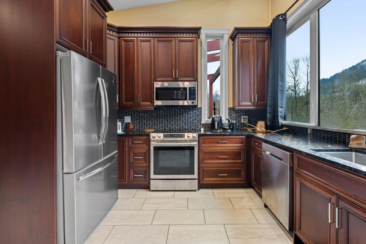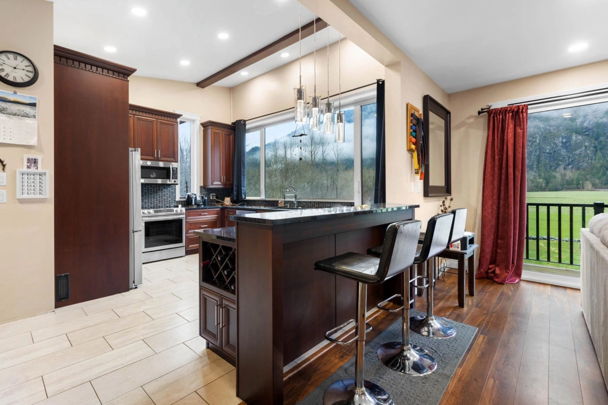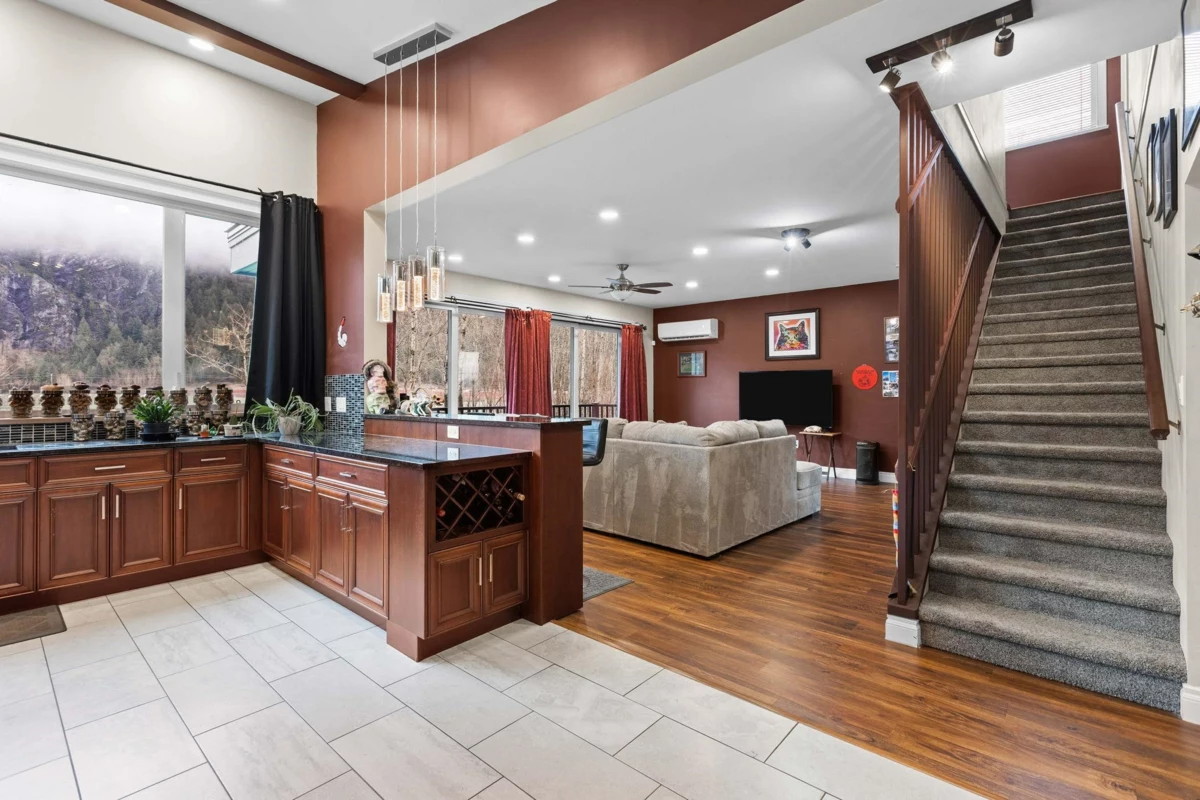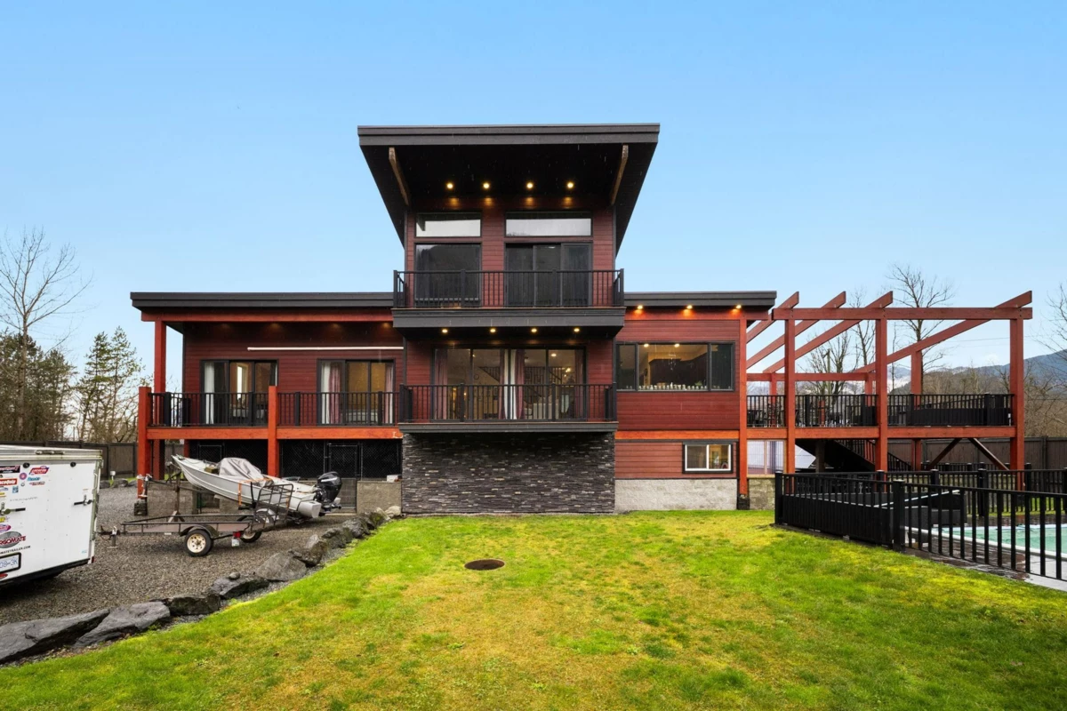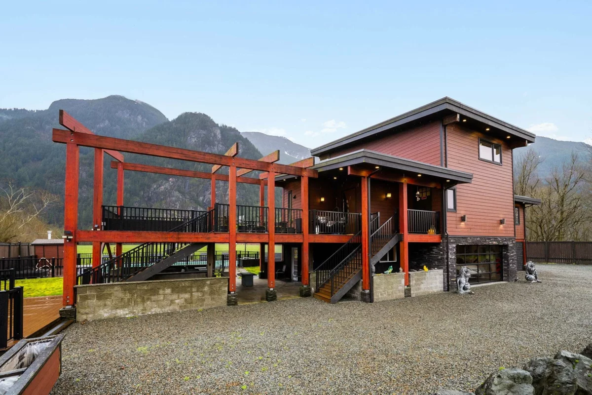 Welcome to your private oasis in scenic Hope! This custom-built 3-bedroom, 2-bathroom home is an entertainer’s delight. The open-concept living room and kitchen are crowned with soaring high ceilings and expansive windows, flooding the home with natural light. The main level features two bedrooms while the private upper floor is dedicated to a spacious primary suite—your own peaceful retreat. Step outside to a massive deck and three additional balconies, all with breathtaking mountain views. Enjoy a gated, heated outdoor pool set against a stunning natural backdrop. The property offers outstanding functionality with a double garage, ample room for vehicles, toys, and tools, plus service and parking for up to five RVs. Solar power helps keep electricity costs low. This property has it all!