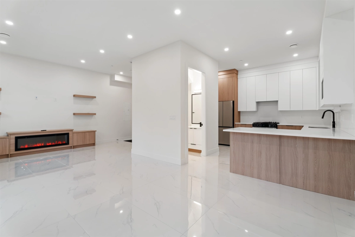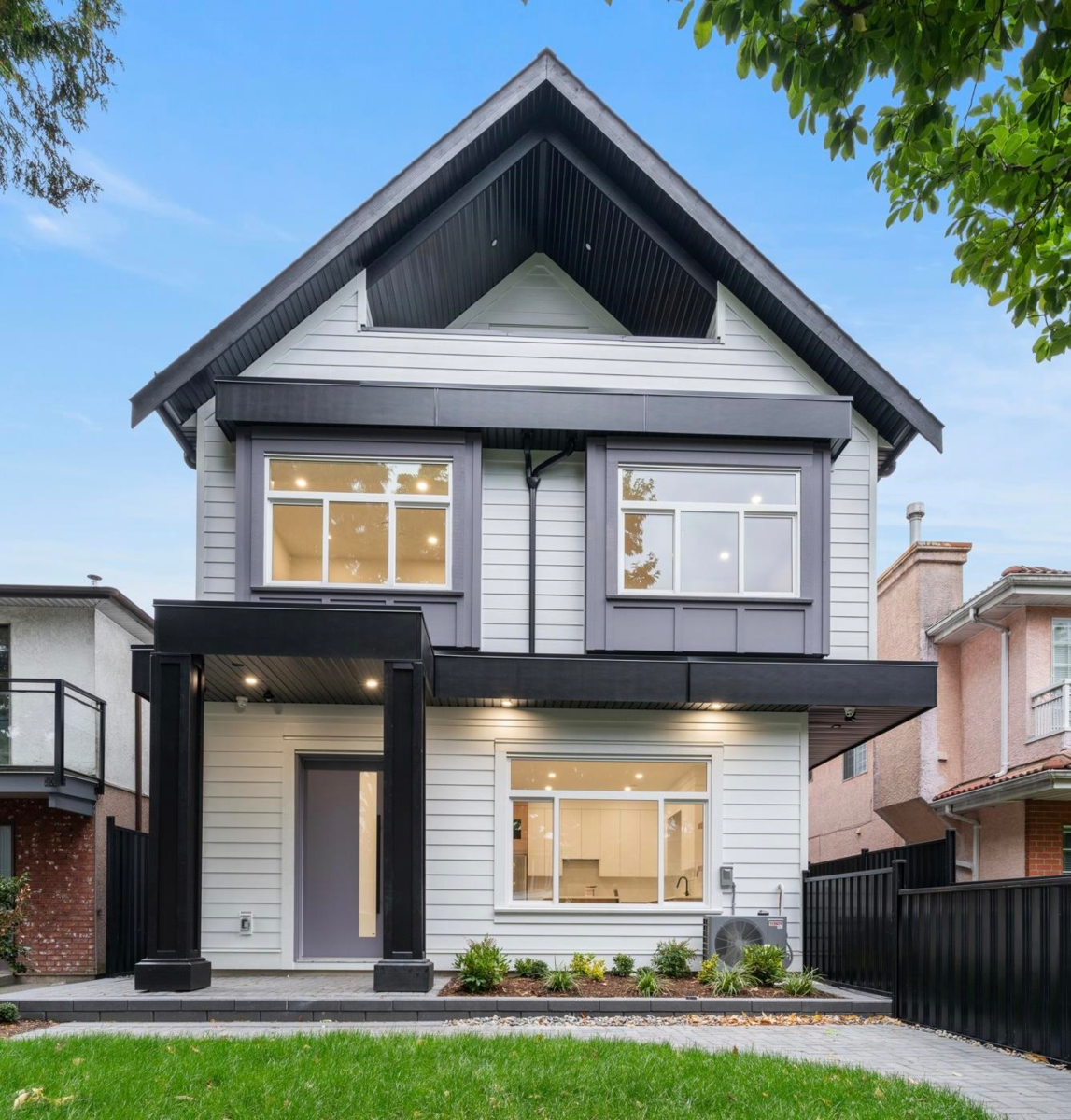 Brand new BACK UNIT duplex at 5873 Culloden Street in Vancouver’s Knight area. 2-5-10 WARRANTY. This modern home features 3 bedrooms plus flex, 3.5 bathrooms, and an open-concept layout with 10ft ceilings on main floor. ALL BATHROOMS ARE INSUITE. Enjoy a sleek kitchen with quartz countertops, GAS range, and stainless steel appliances, RADIANT HEATING and large windows for natural light. The spacious primary suite includes a walk-in closet and spa-like ensuite. AC with Heat Pump included. Close to memorial park & Track. Each unit comes with a private yard, 1 PARKING Garage, EV CHARGER. Located on a quiet street near parks, schools, shops, and transit. Perfect for families or investors