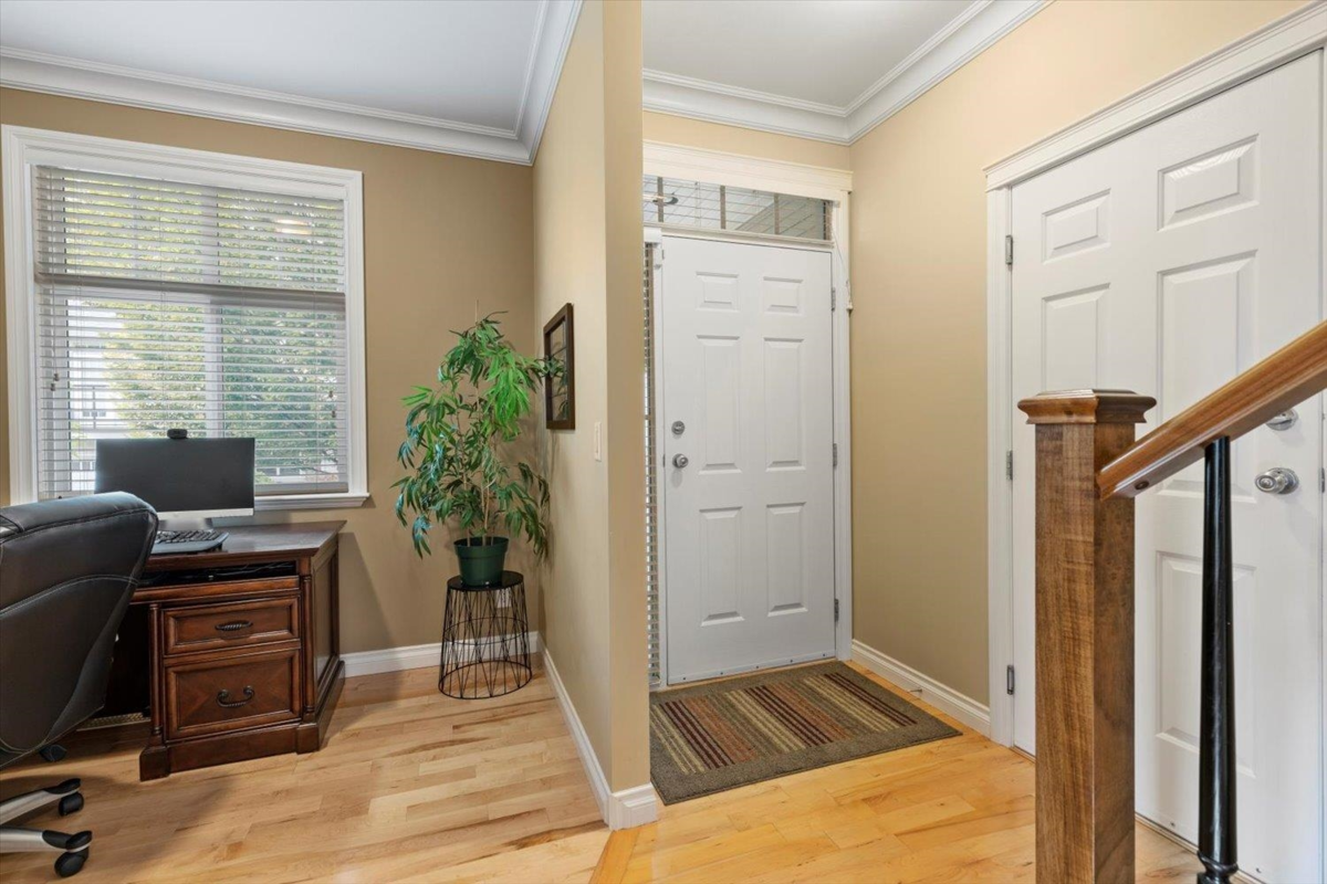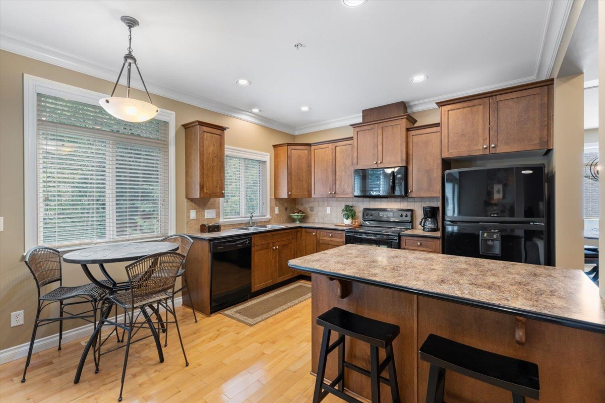 KING'S GATE in east Abbotsford where classic charm meets modern convenience in a secure GATED COMMUNITY. Come see this fantastic END UNIT townhome w/ 2 beds/3 baths + Den! This spacious home features hardwood flooring on the main, open plan kitchen w/ fireplace in family room, 9' ceilings plus BACKS GREENSPACE! Upstairs is the spacious primary bedroom w/5 pc ensuite & walk-in closet. Downstairs offers another bedroom, 4 pc bath & supersized rec room. The layout is ready to accommodate a 3rd bedroom by framing in 2 easy walls. Large dbl garage for lots of storage or extra parking in driveway w/ visitor spots close by. Upper & lower outdoor space to enjoy the PRIVATE & SERENE GREENBELT. Just minutes to beautiful walking trails & LEDGEVIEW GOLF Club. No age restriction & pets welcome here!