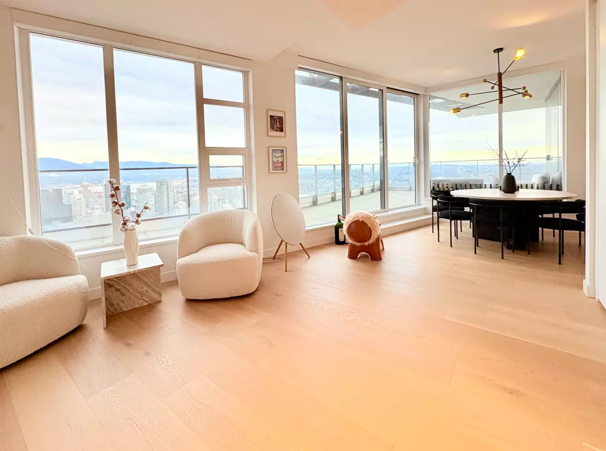 A rare sub-penthouse at One Burrard Place, occupying half of the 59th floor with only two homes on the level. This 3 bed 4 bath residence showcases sweeping, unobstructed views of False Creek, the city skyline, North Shore mountains, Stanley Park. Luxury finishes include GAGGENAU appliances, Italian MITON kitchen, KICO closets, ANTONIO LUPI sink, and BOCCI lighting. The 1,130 sq.ft. wraparound terrace extends the living space outdoors. Smart-home features, A/C, and 24/7 concierge offer elevated comfort. CLUB ONE’s 30,000 sq.ft. of amenities includes a pool, spa, gym, wine and music rooms, salon, private dining, and guest suite.