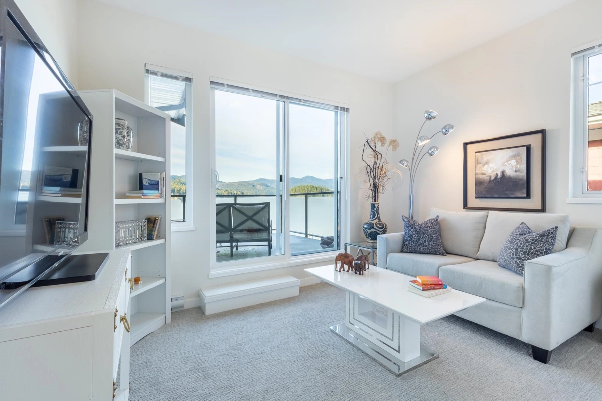 Waterfront living at Edgewater at Porpoise Bay. Beautiful west-facing 1,546 sq ft townhome with main floor primary bedroom with walk-in closet and ensuite. Features 3 bedrooms + family room, high ceilings, granite counters, stainless-steel appliances and a well-cared-for interior that shows extremely well. Several upgrades including laminate flooring in the primary bedroom, in-floor heat in the ensuite, natural gas fireplace and window screen package. Enjoy breathtaking views of the Sechelt Inlet with kayaking, paddle boarding and swimming just steps from your door. Low-maintenance coastal living at its finest.